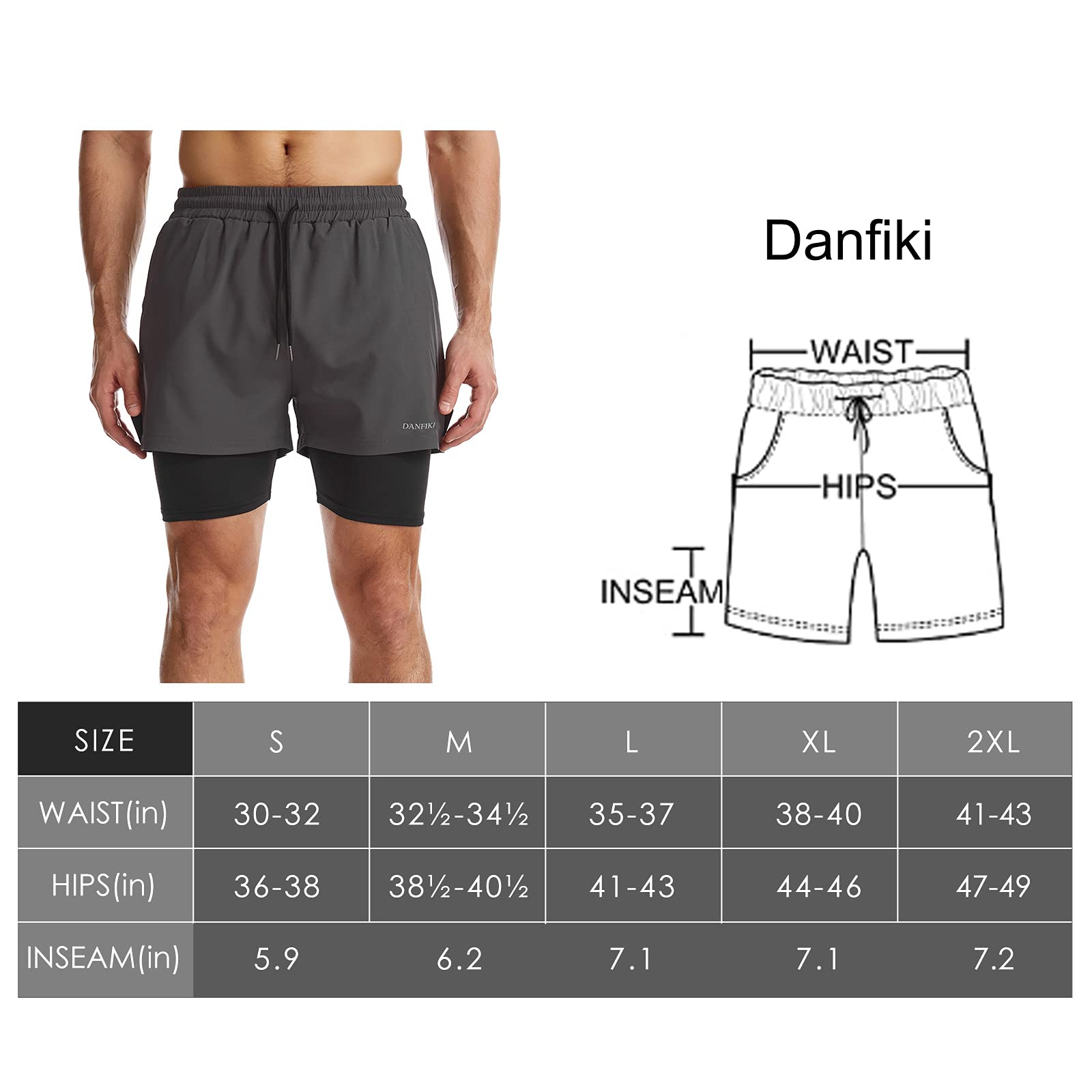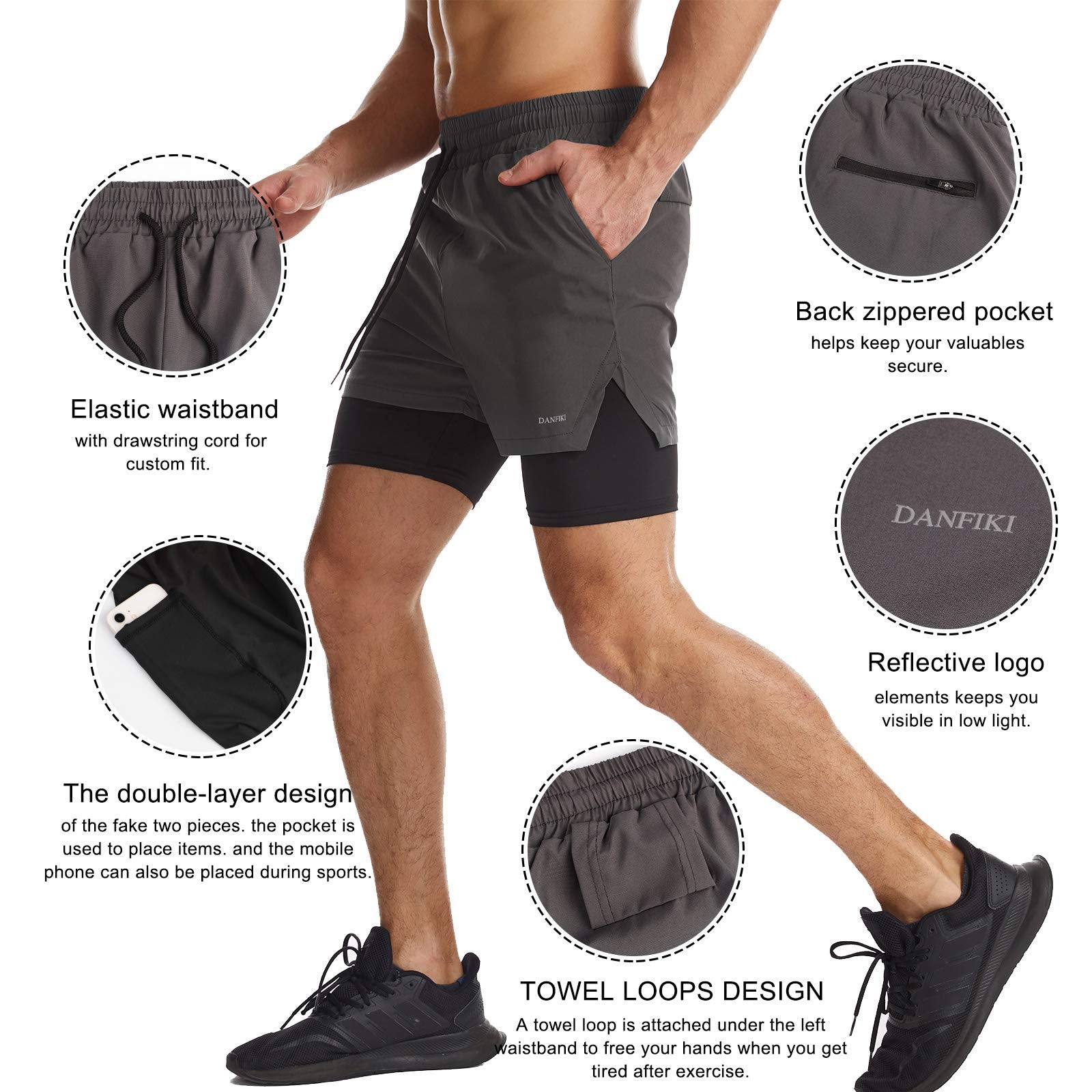 Danfiki Men Running Shorts Men's Shorts Workout with Phone Pocket 2 in 1 Gym Training Shorts Lightweight Quick Drying Grey