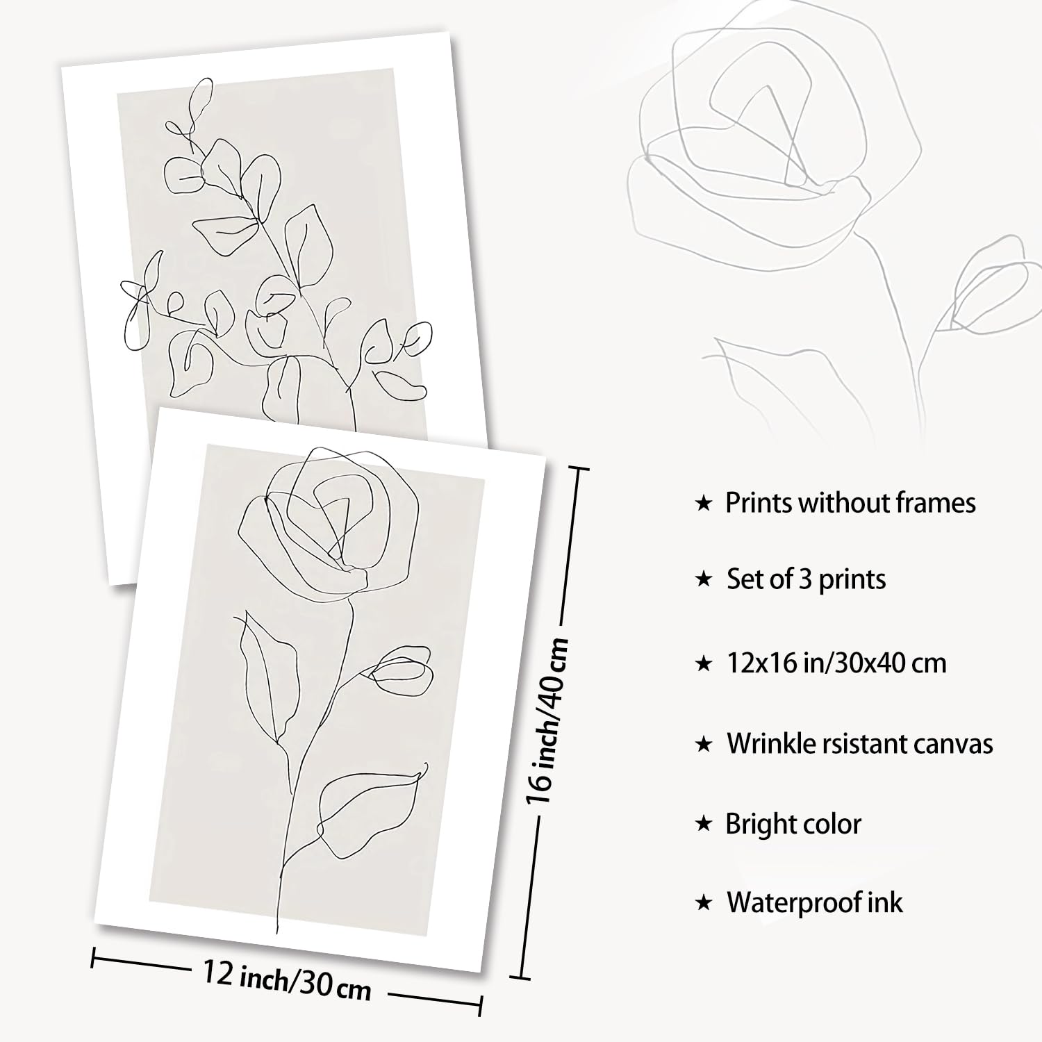 Dazzlewall Abstract Botanical Wall Decor Poster Minimalist Flower Line Wall Poster for Bedroom Living Room Decor 12x16 in Unframed Set of 3