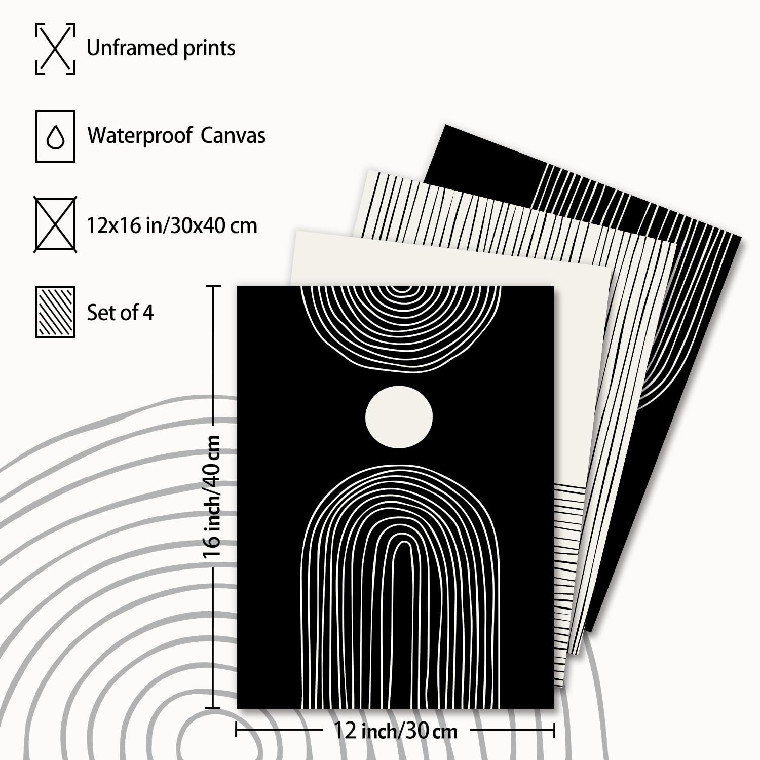 Dazzlewall Boho Black and White Wall Decor Poster Abstract Geometric Line Wall Poster for Bedroom Living Room Decor 12x16 in Unframed Set of 4