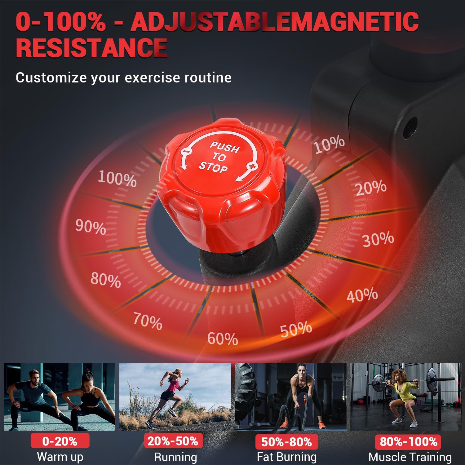 Quick Stop Safety Brake: Easily adjust resistance or stop the flywheel instantly with the press of a button—safe for every fitness level.