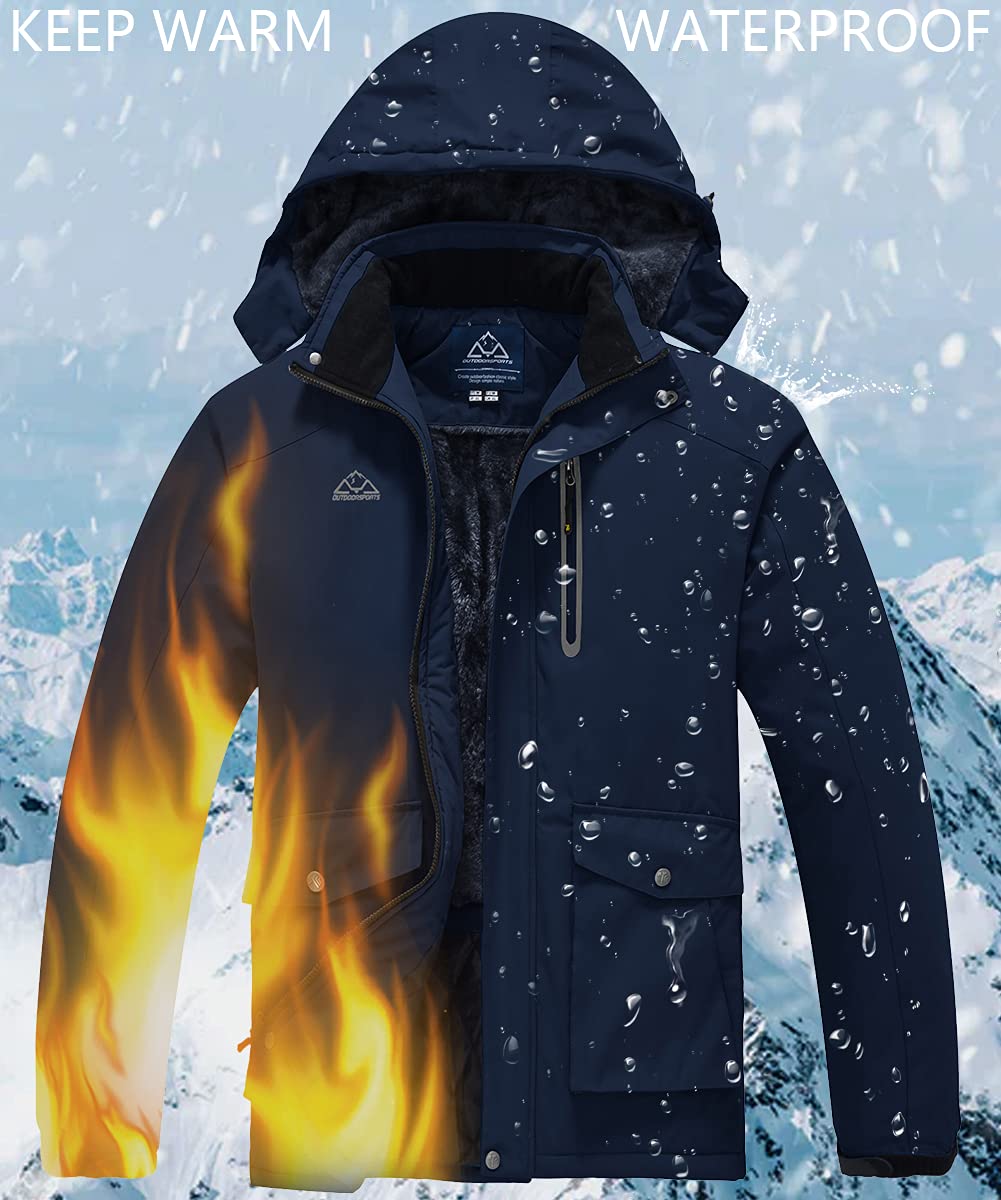 - donhobo Men's Waterproof Ski Jackets | Winter Fleece Windproof | Jacket Outdoor Hiking Windbreaker Coats -