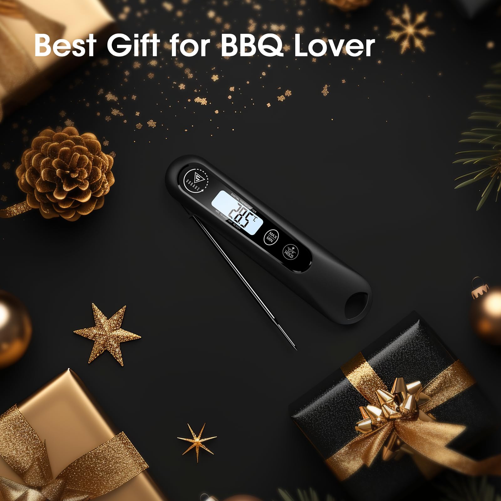 Sensitive Foldable Long Probe & Backlight: The 12cm long probe, made from high-quality 304 stainless steel, offers deep penetration for accurate readings, while the foldable design makes it easy to store. The backlit screen ensures readability in any lighting, so dad can cook with confidence day or night.