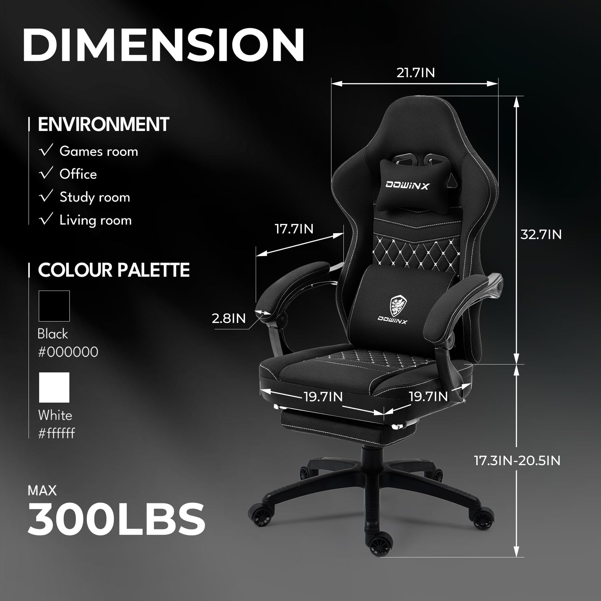 - Dowinx Gaming Chair Fabric with Pocket Spring Cushion | Massage Gaming Chair with Footrest| Ergonomic PC Chair | Gamer Chair -