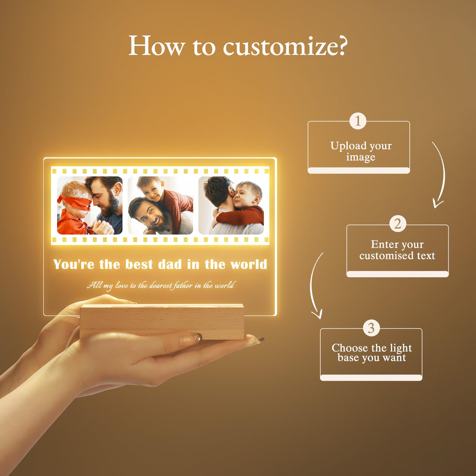 Looking for a unique gift that will melt your dad's heart? The Personalized Night Light with Photo is a perfect way to showcase your love and appreciation for him, whether it's for Father's Day, his birthday, or any special occasion. This custom night light features a personal photo of you and your dad, creating a warm, sentimental atmosphere in any room. A thoughtful gift from a daughter, son, or even a mother to make dad’s day extra special!