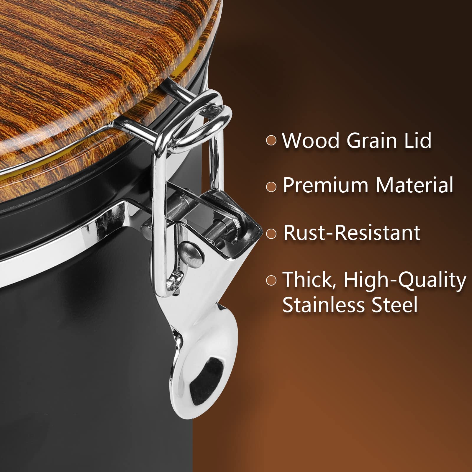 Premium Material: Made from rust-resistant, high-quality stainless steel, this coffee canister is built to last. The durable metal clamp and flip-top lid ensure that your beans are securely stored over time.