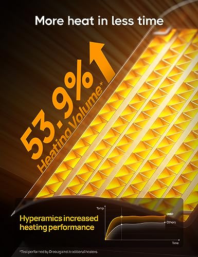 Powerful Heat with Enhanced Reach: The Dreo Space Heater combines a 1500W Hyperamics PTC system and an innovative heat funnel design to provide instant warmth. It enhances warm air circulation, ensuring heat travels up to 200% farther than traditional heaters, making it perfect for any space.