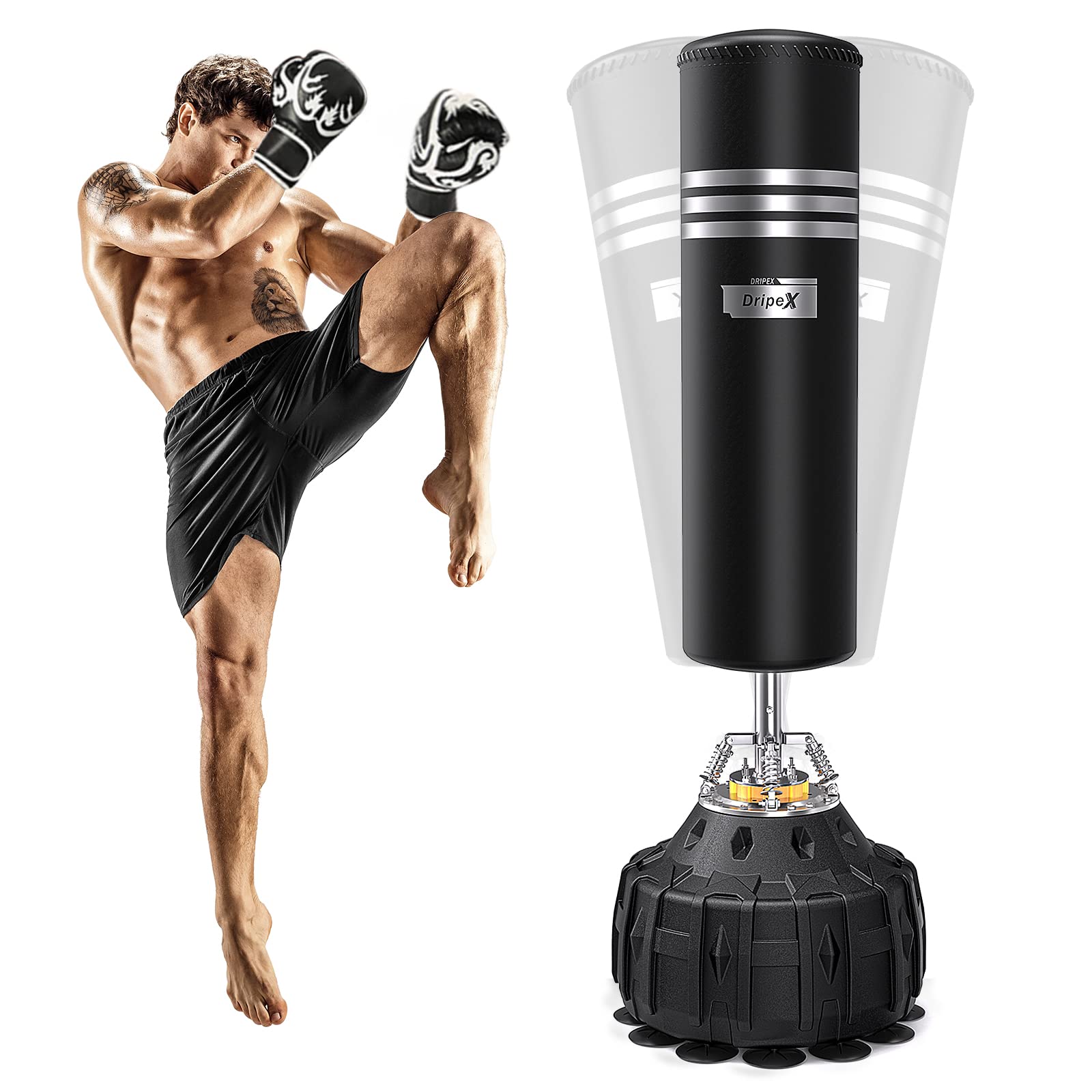 - Dripex 70 Inch Upgrade Free Standing Punch Bag | Boxing Bag with ABS Base | 19 Suction Cups -