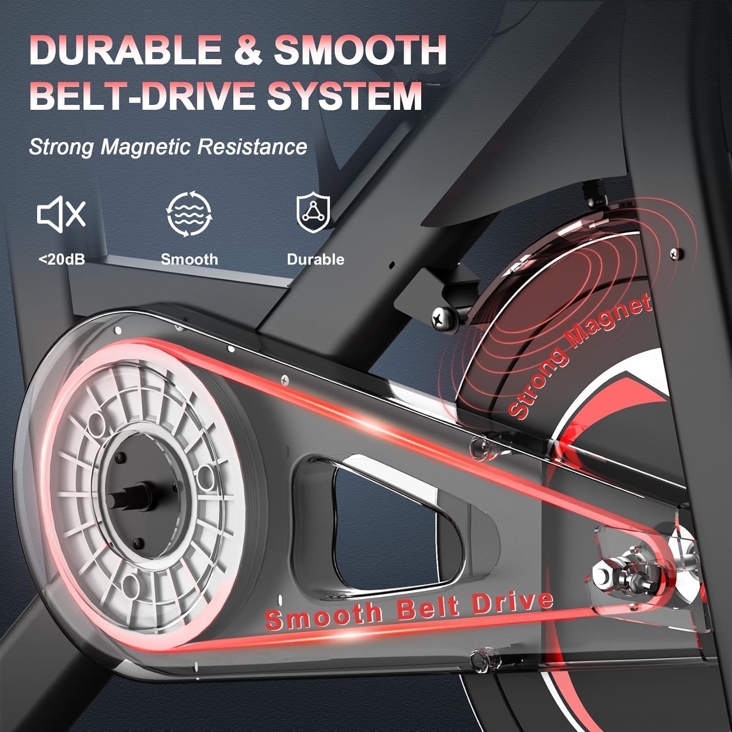 Near Silent Magnetic Resistance: This exercise bike uses an almost silent magnetic resistance system, ensuring a quiet workout that won’t disturb others in the house. The system also requires minimal maintenance and doesn't need brake pad replacements, making it a durable choice for long-term use.