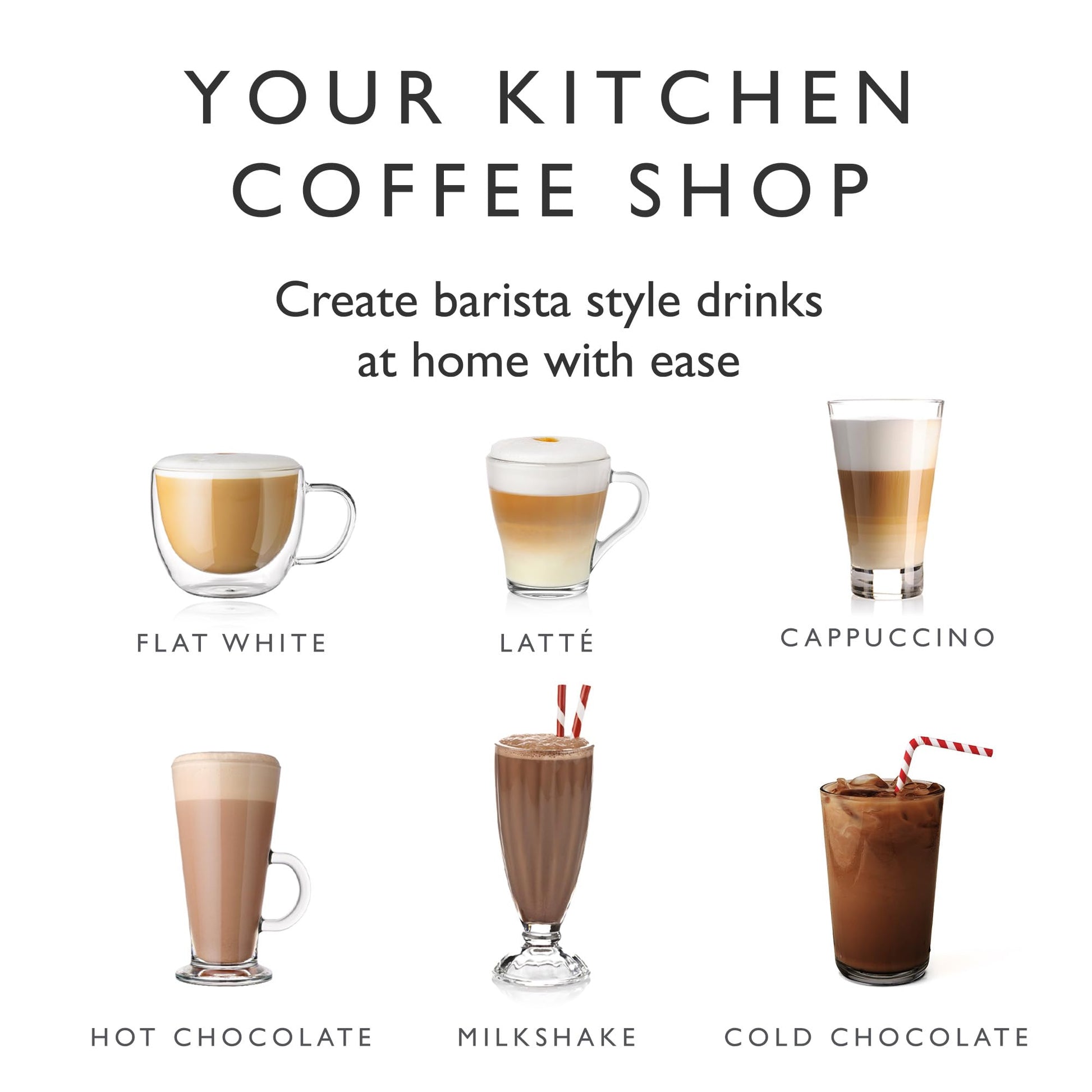 Versatility in Use: Whether it’s cappuccinos, flat whites, lattes, mochas, milkshakes, or hot chocolate, this frother is engineered to make a variety of indulgent drinks with ease, thanks to the included accessories for hot or cold milk frothing.