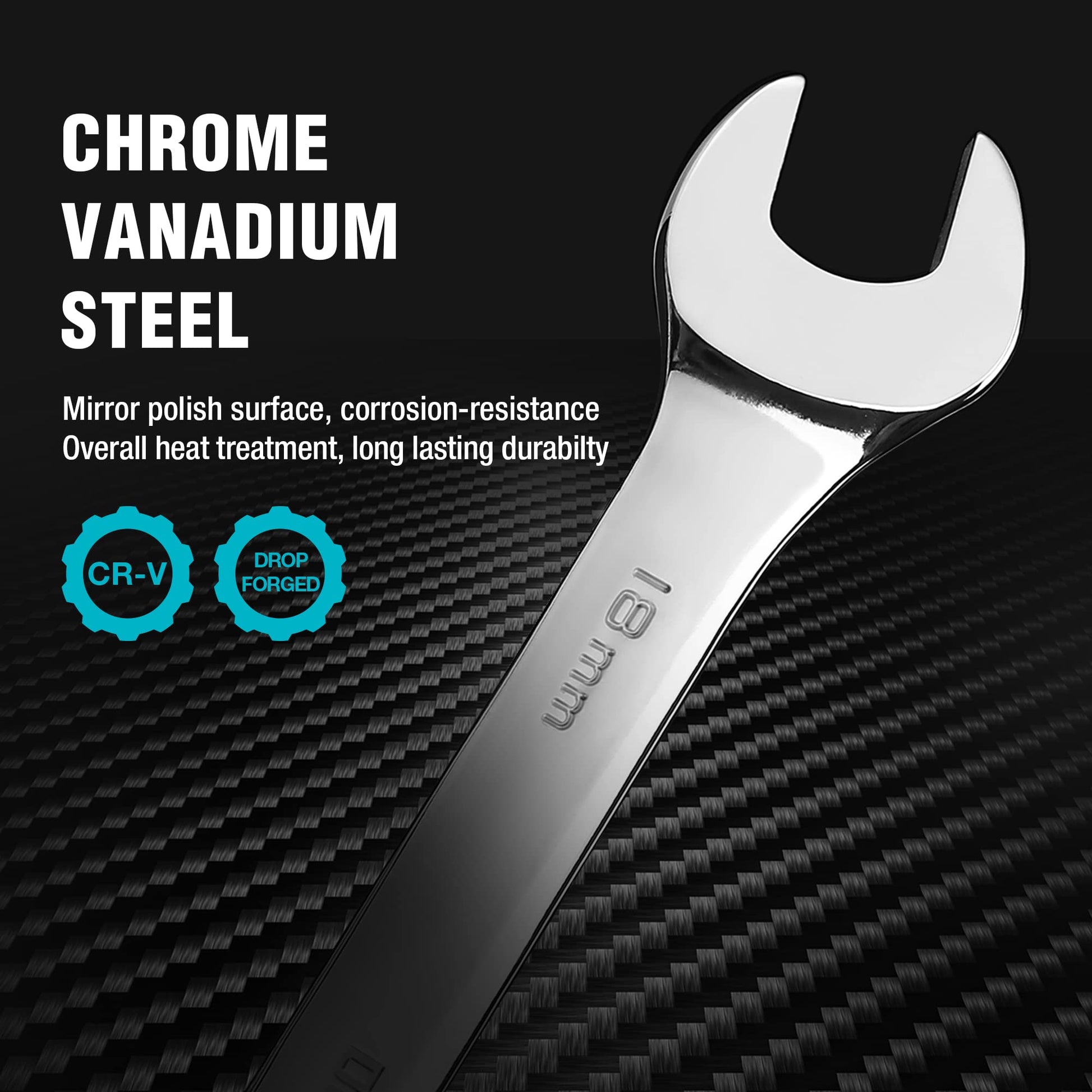 Durable chrome vanadium steel with mirror finish resists corrosion
