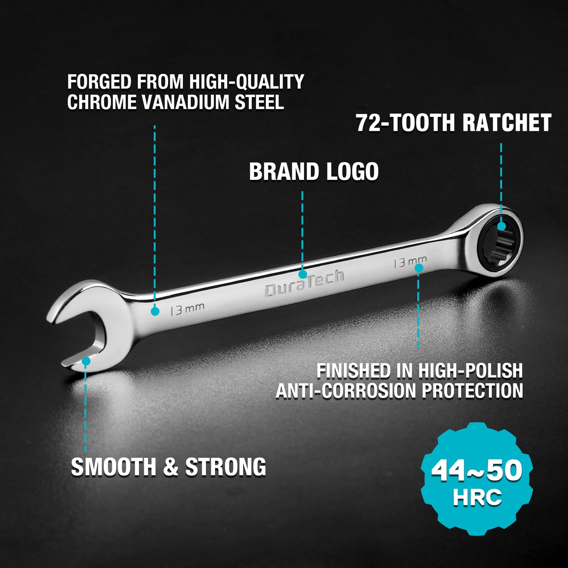 Efficient Ratcheting Action: The 72-tooth ratchet design needs only a 5° swing arc, paired with a 12-point box end to tackle bolts without rounding.