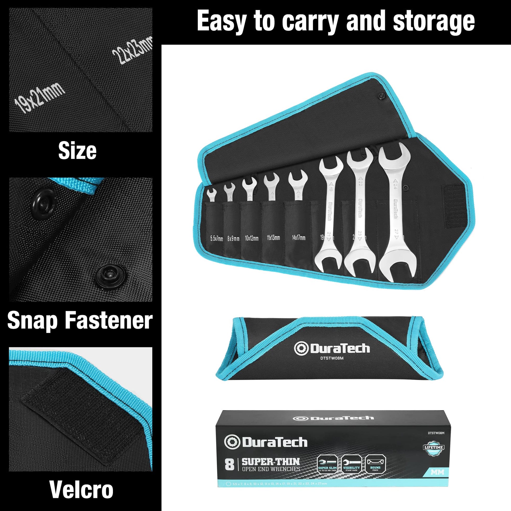 - DURATECH Double Open End Spanner Set | Super-Thin Open Ended Wrench Flat Spanner Set for Narrow Space | Carbon Steel, Mirror-Chrome Plated | 8-Piece | Metric | 5.5 mm-27 mm | Carry Pouch -
