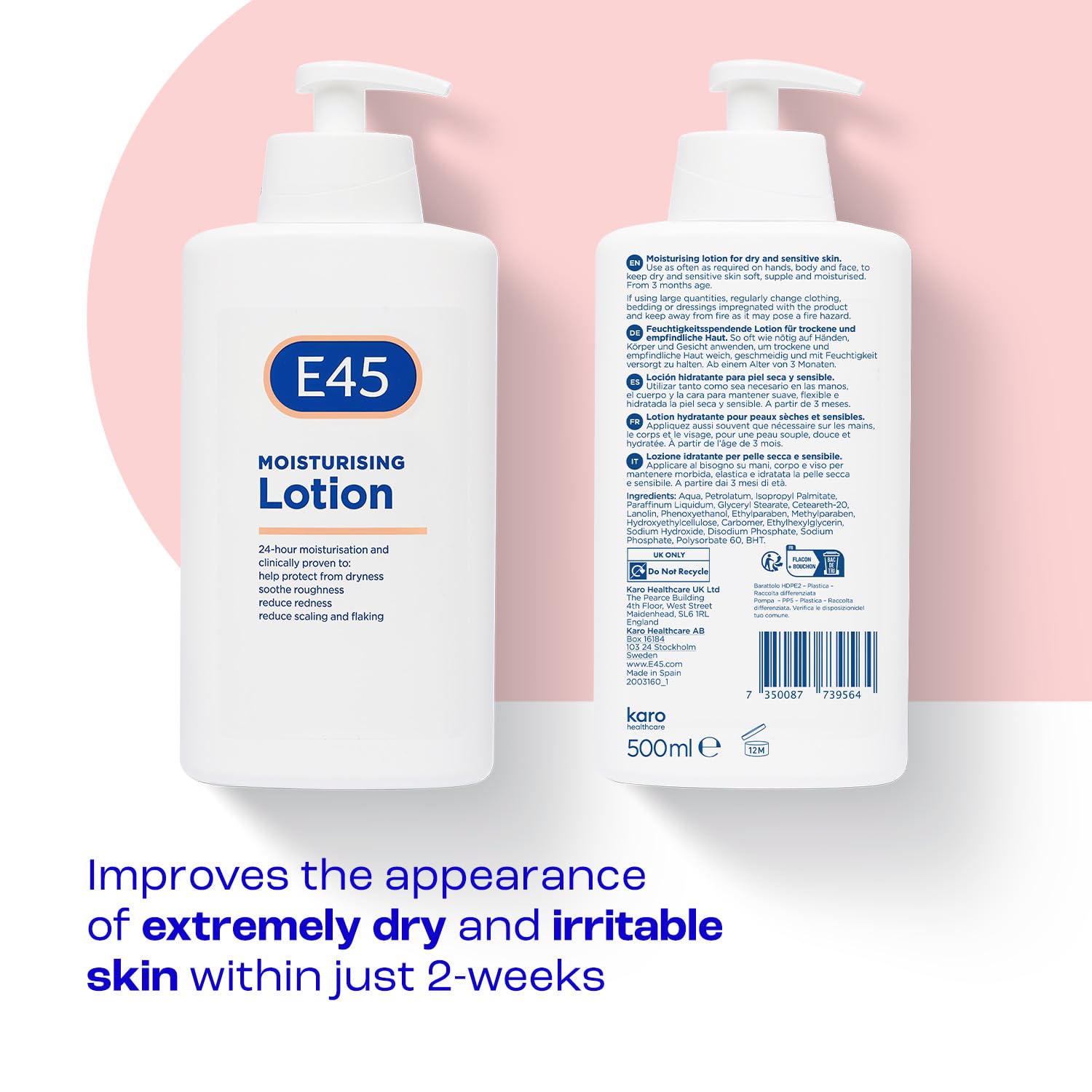 - E45 Moisturising Lotion | 500 ml | Dermatological Body Moisturiser Lotion -