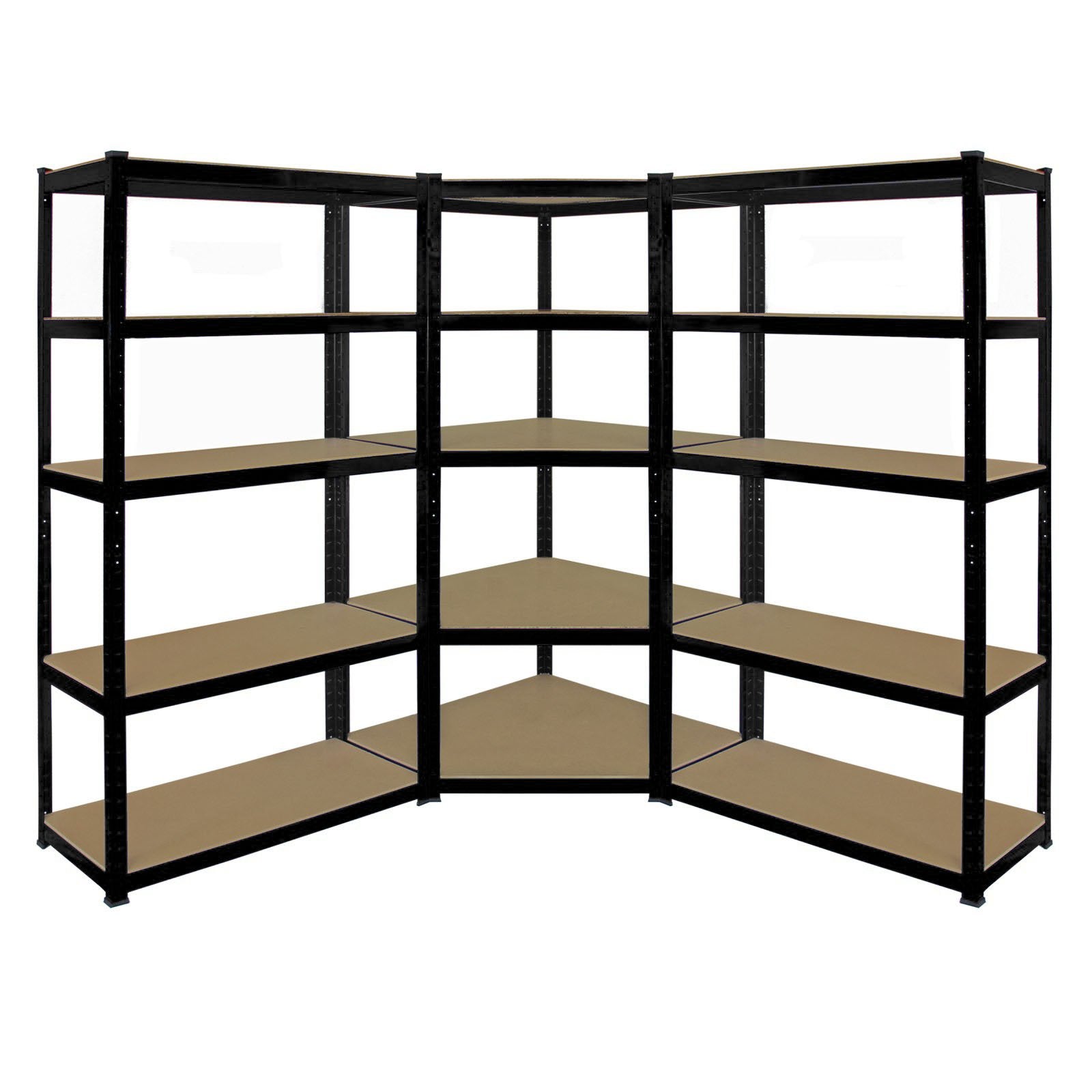- EAZILIFE 5 Tier Boltless Shelving Storage Kit | Consists of 1 x 5 Tier Corner Shelving Rack 2 x 900mm Straight 5 Tier Shelf Units -