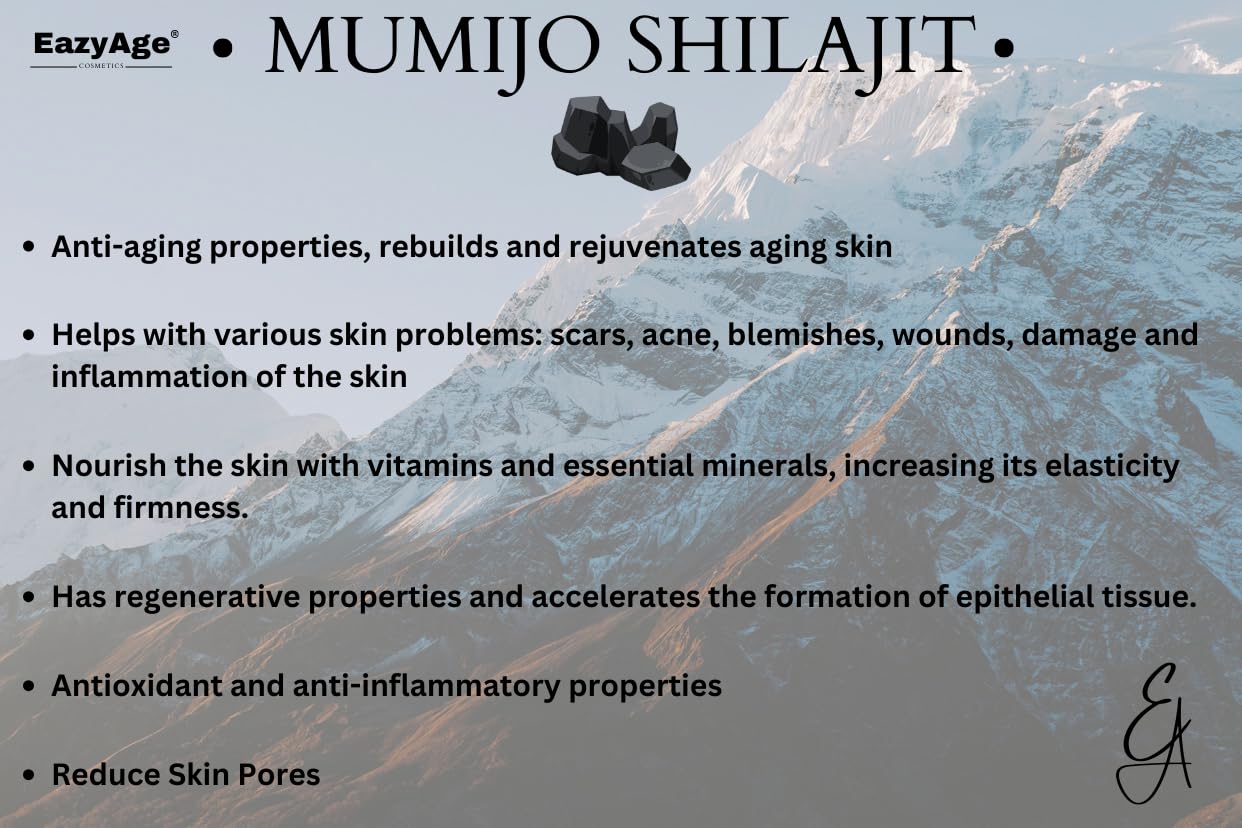 Micro-Encapsulation Technology: This innovative technology combines Mumio Shilajit, Hyaluronic Acid, Vitamin C, and Niacinamide (Vitamin B₃) to provide enhanced absorption and effectiveness, ensuring that the skin gets the full benefits of these powerful ingredients.