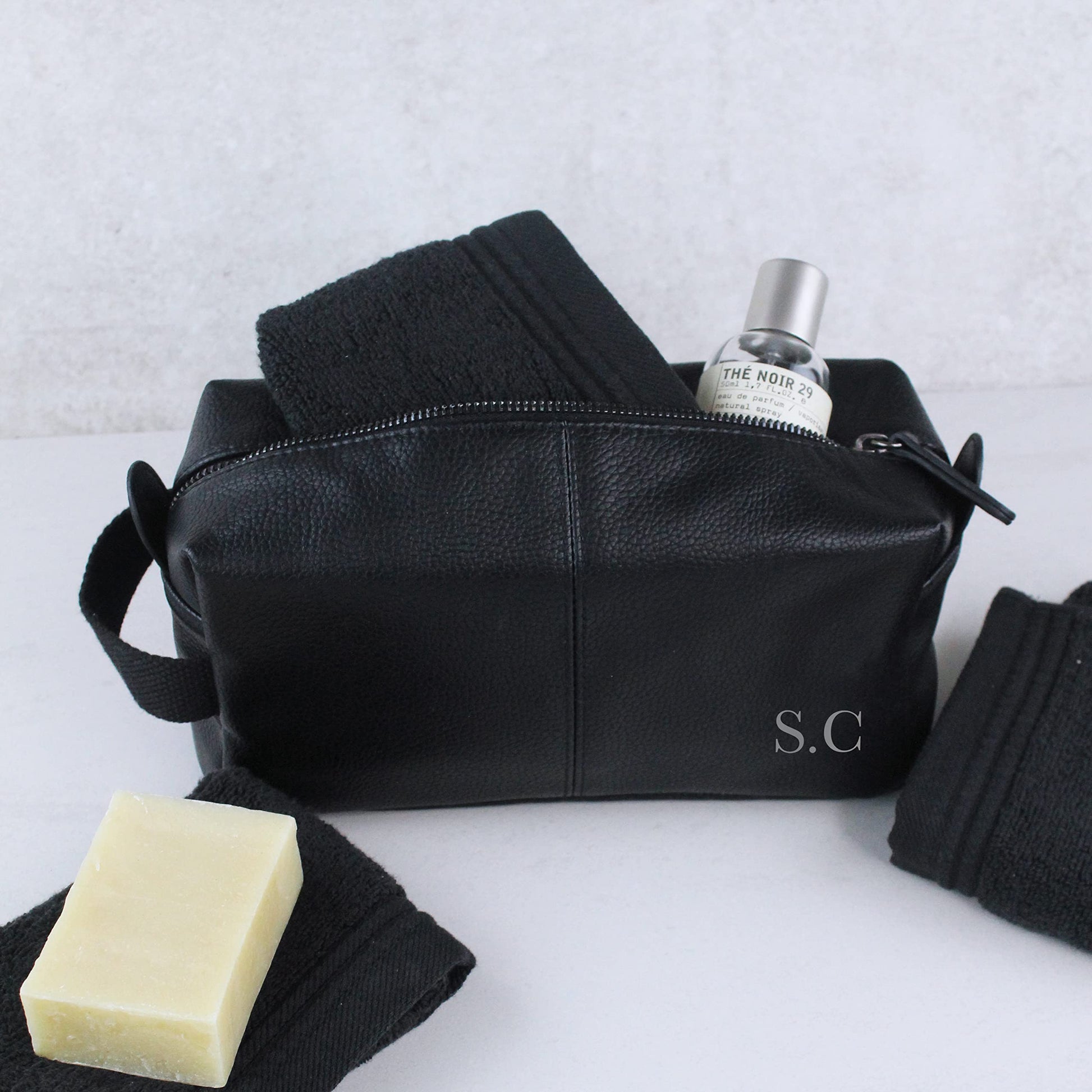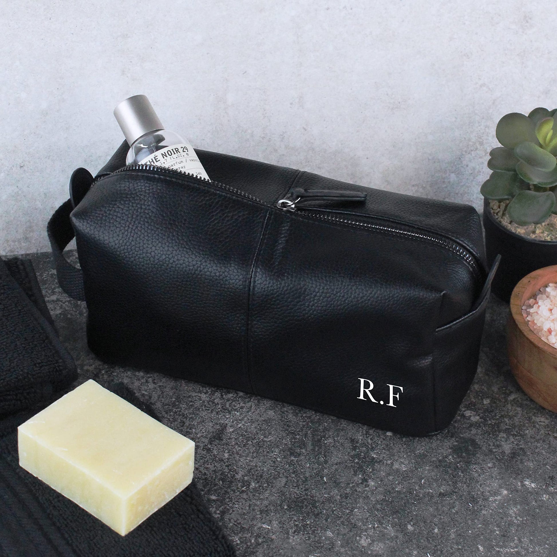 - eBuyGB Personalised Men's Leather Look Wash Bag | Initials -