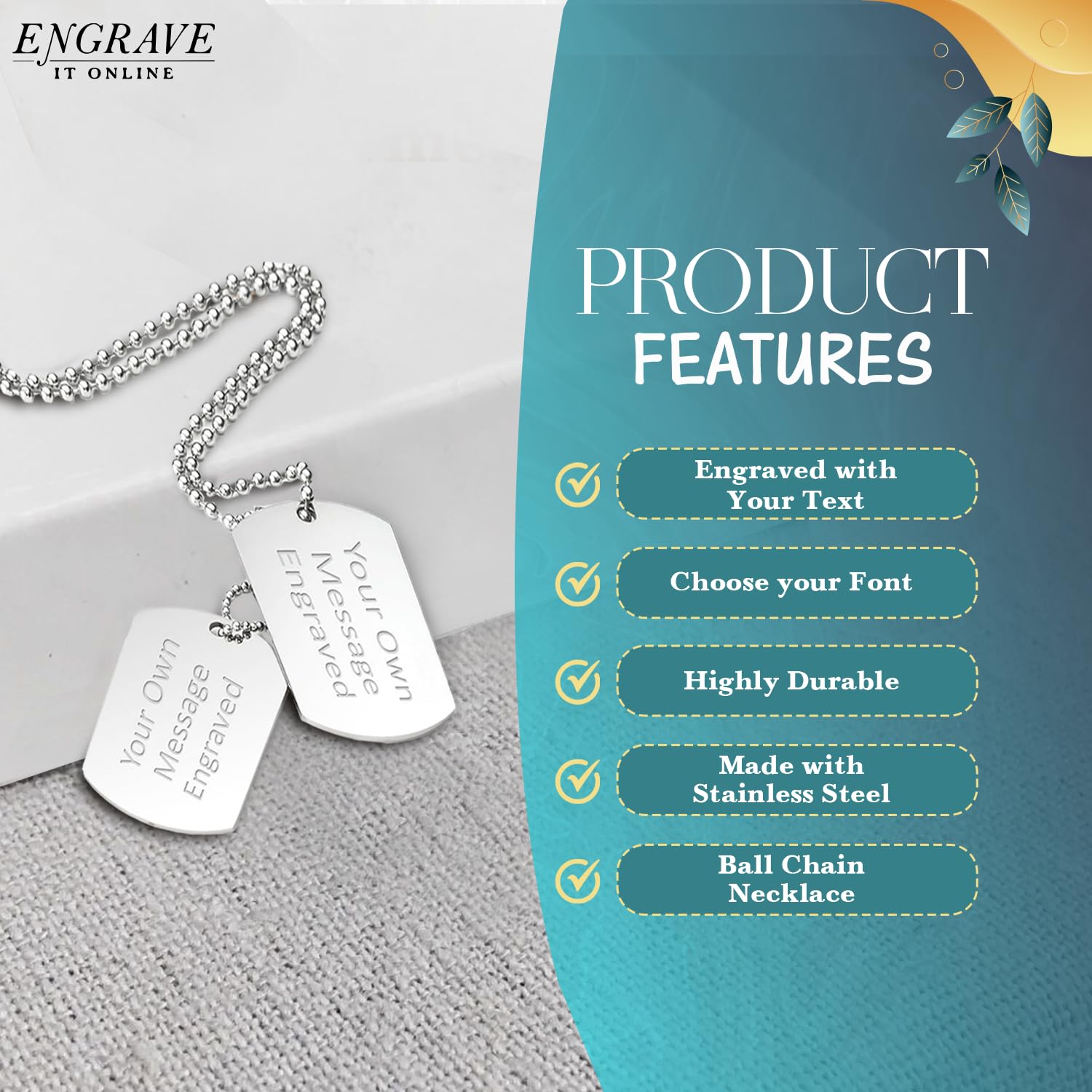 Double Dog Tag Design: Features two stylish tags—one fixed and one on a 4-inch extension—offering a layered look with maximum personalisation.
