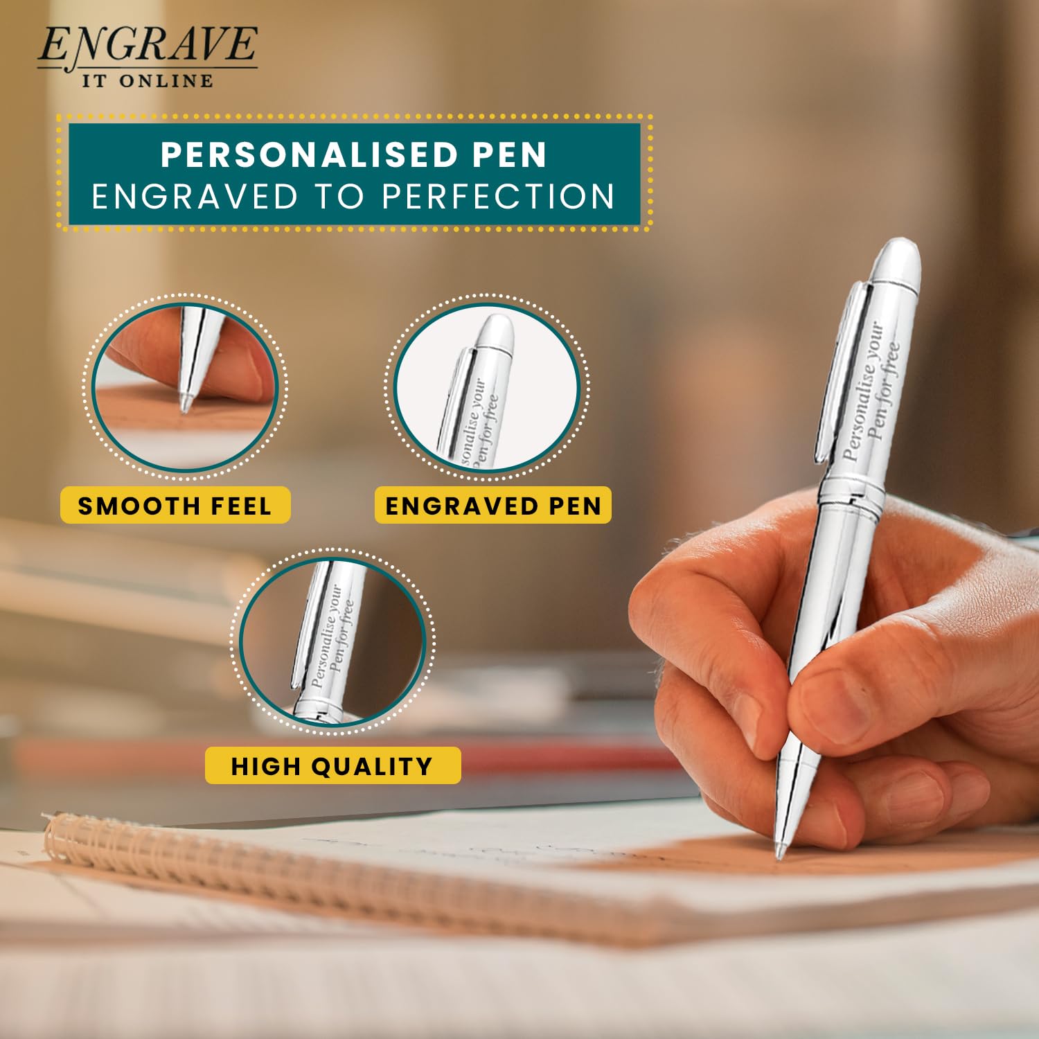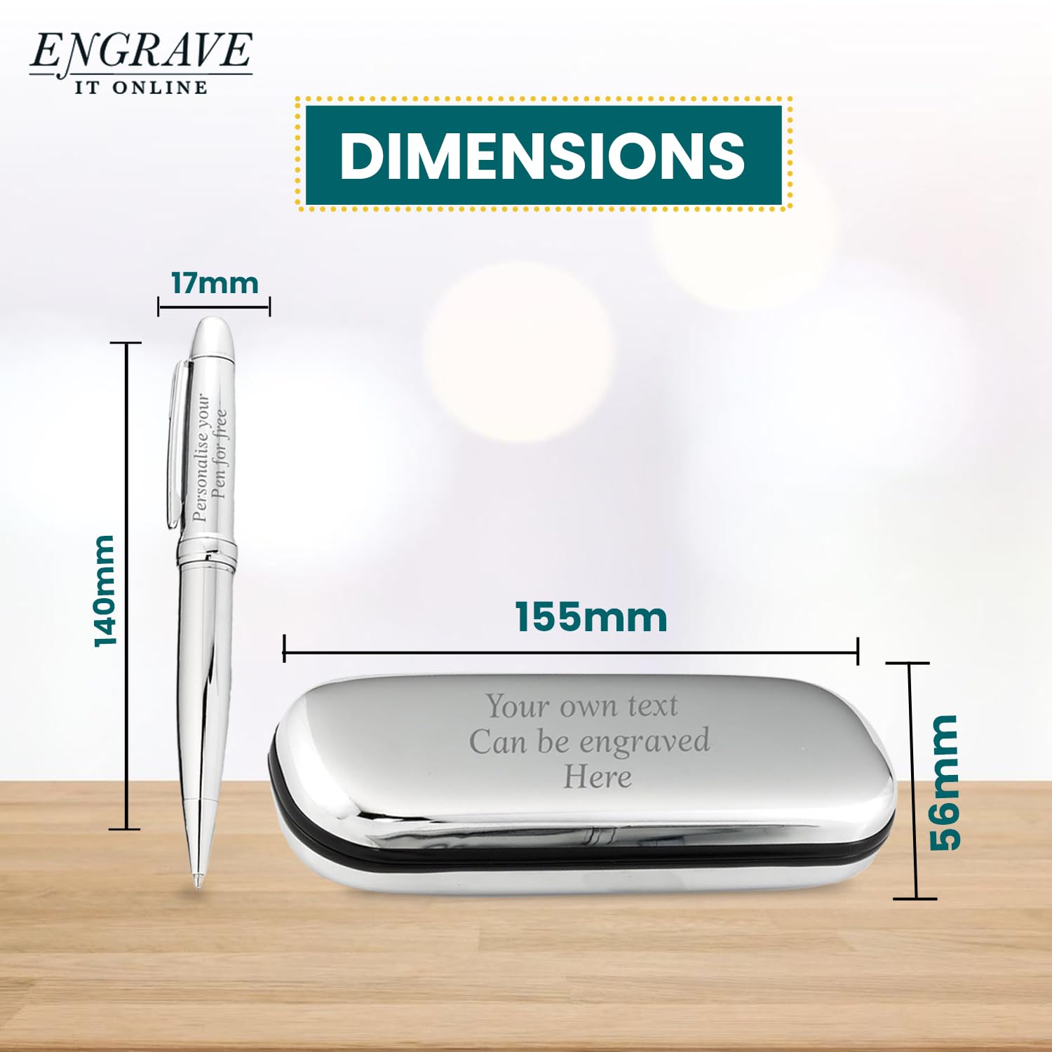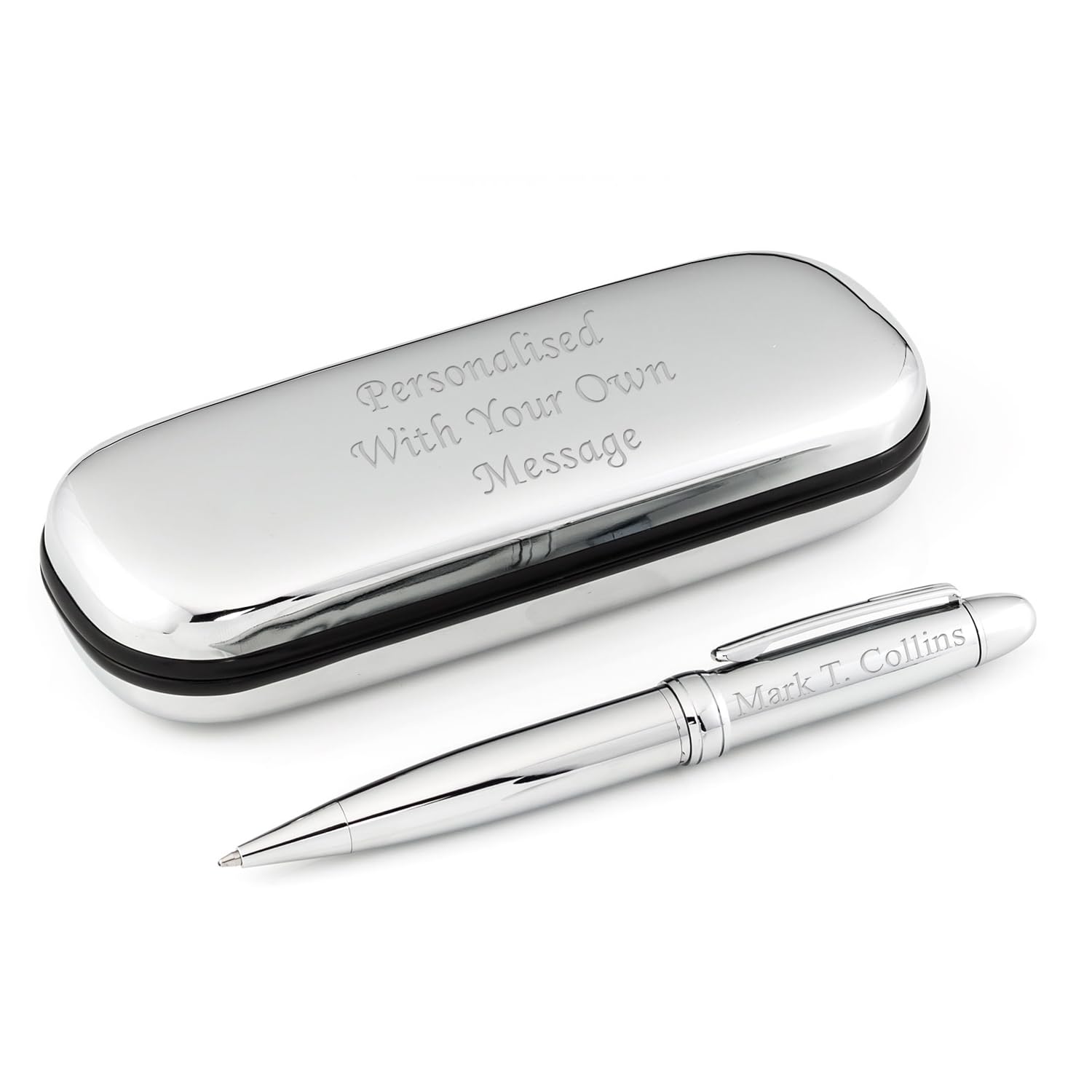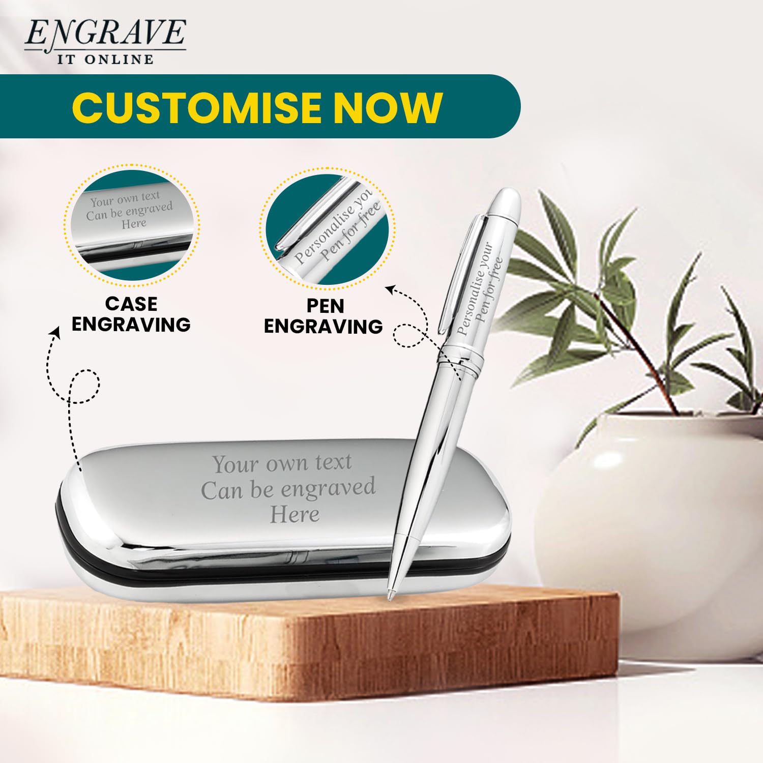 - EIO Gifts Personalised Pen | BallPoint Silver Pen in Chrome Case | Engraved -