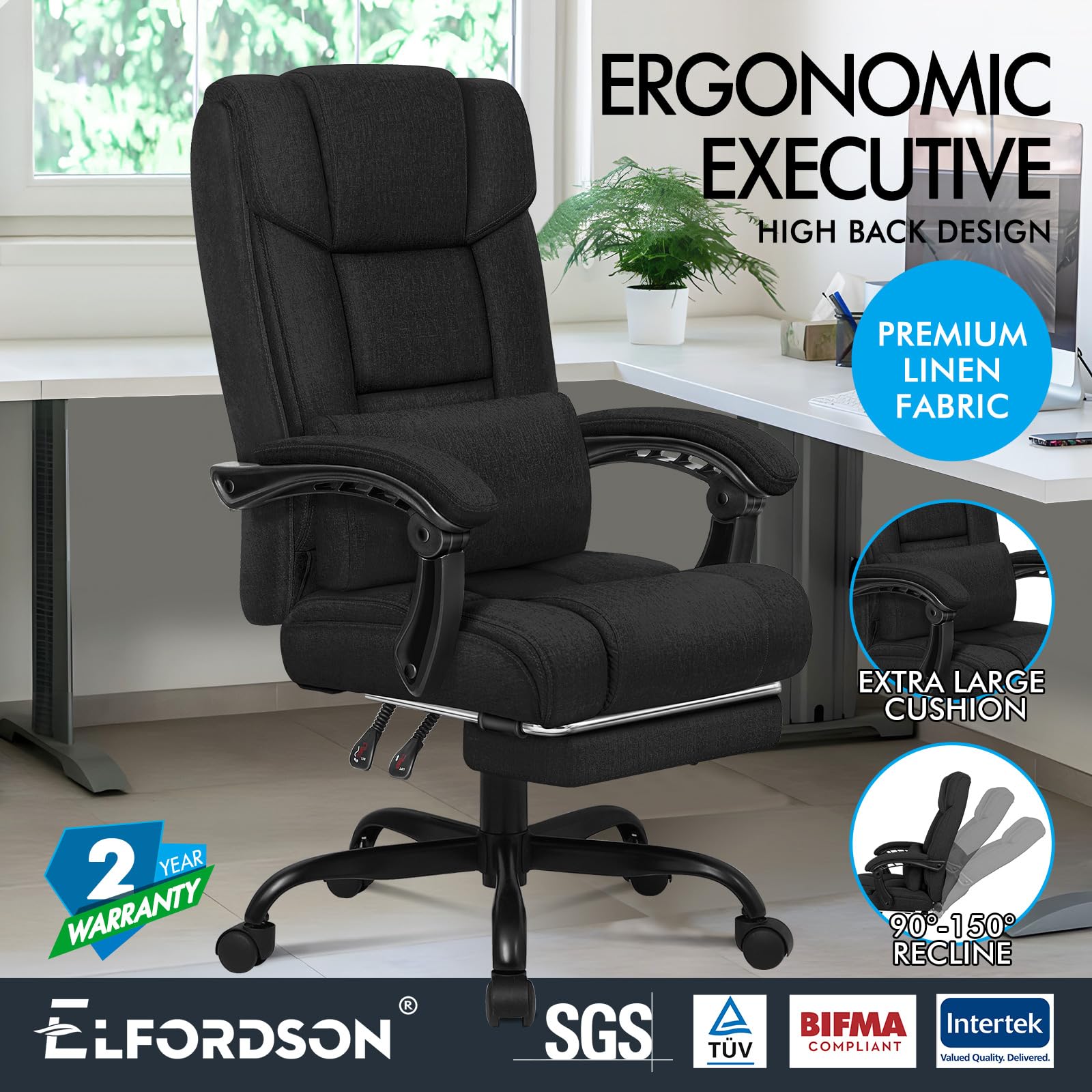 - ELFORDSON Office Chair | XL Lumbar Cushion | Computer Desk Chair with Footrest | High Back 150° Recliner -