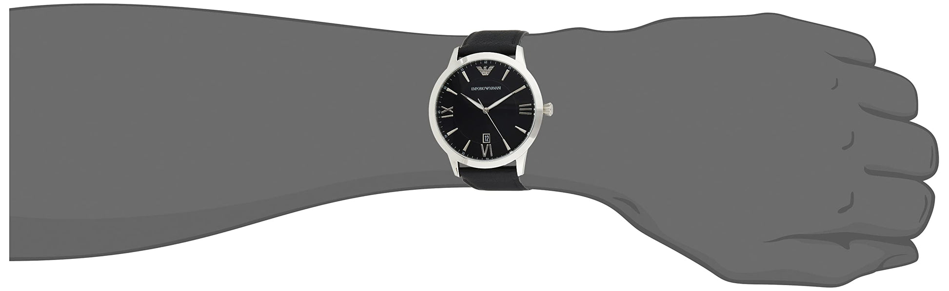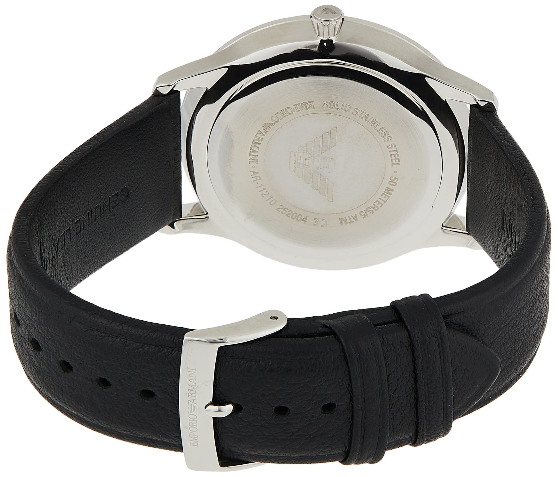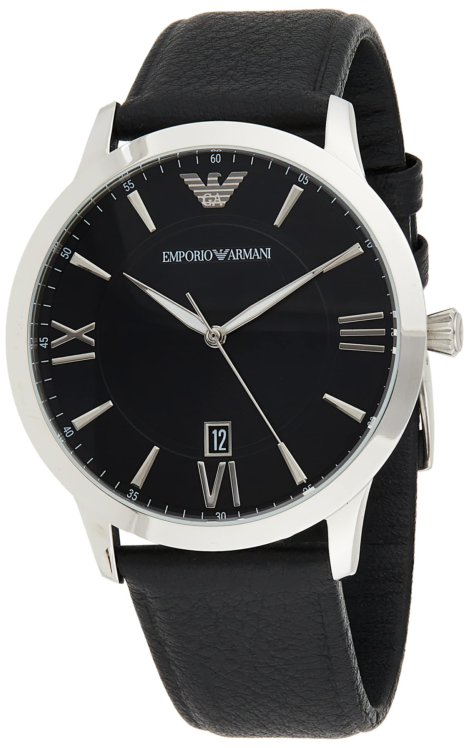 - Emporio Armani Watch for Men | Three Hand Date Movement | 43 mm Silver Stainless Steel Case with a Leather Strap | AR11210 -