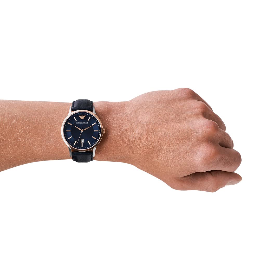 - Emporio Armani Watch for Men | Two Hand Date Movement | 43 mm Silver Stainless Steel Case with a Leather Strap | AR11188 -