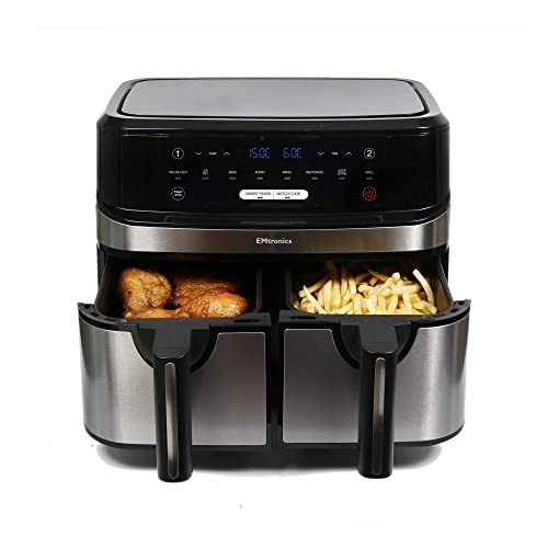 - EMtronics Dual Air Fryer | Extra Large Family Size | Double XL 9 Litre | 8 Adjustable Pre-Set Menus -