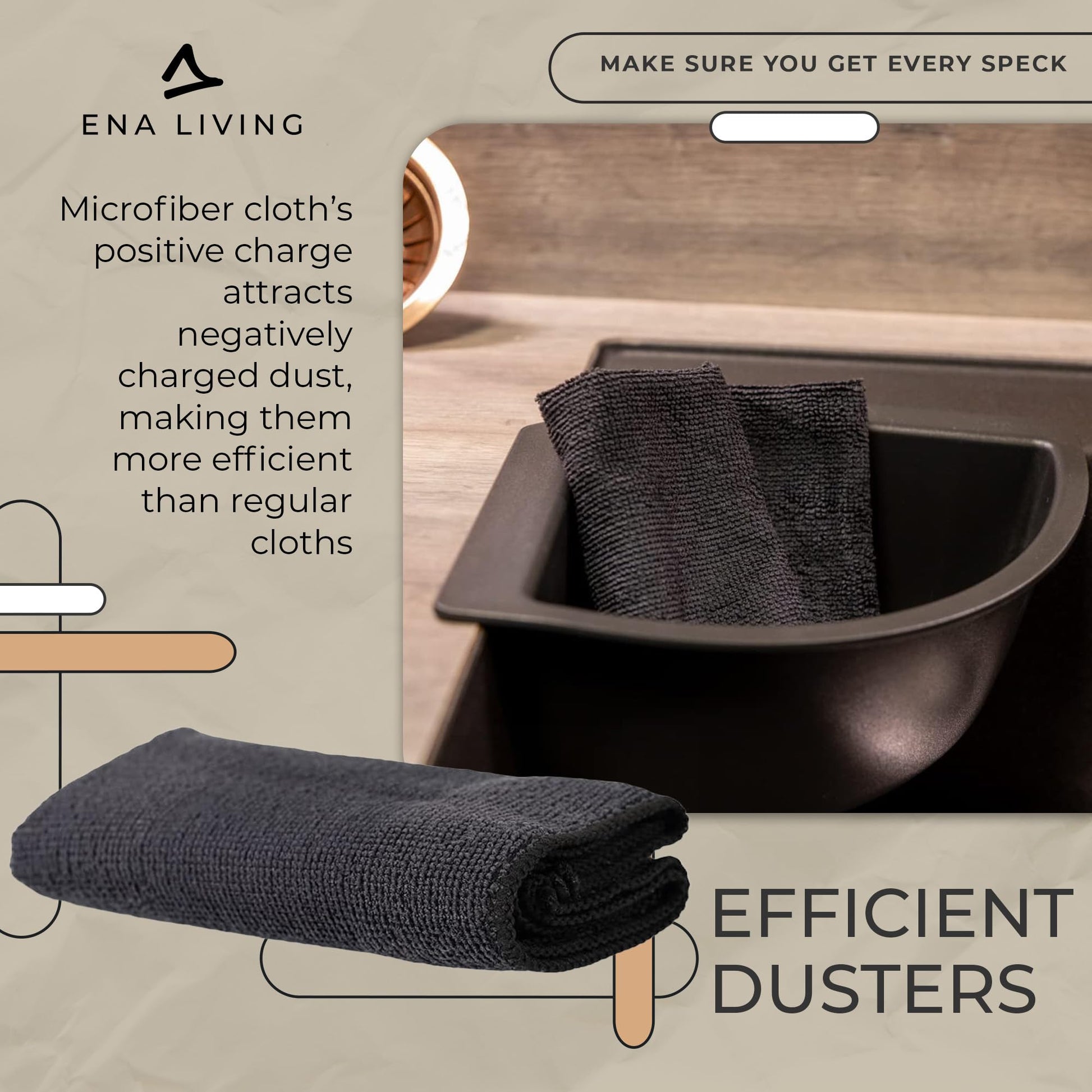 - ENA Living Black Microfibre Cloth | Efficient Dusters For Cleaning -