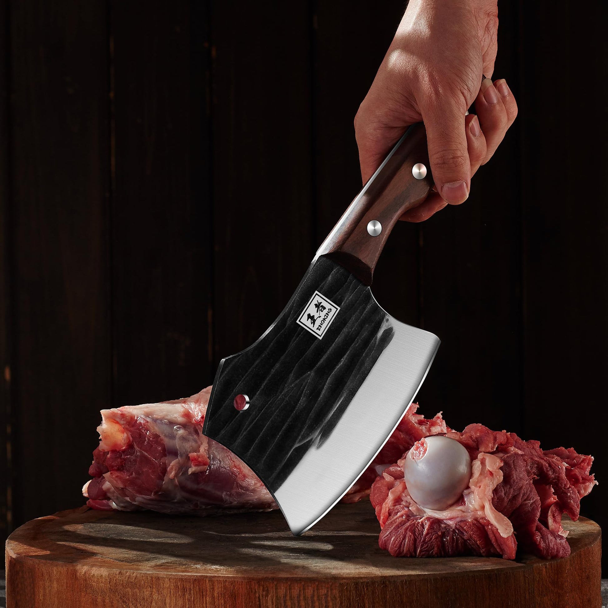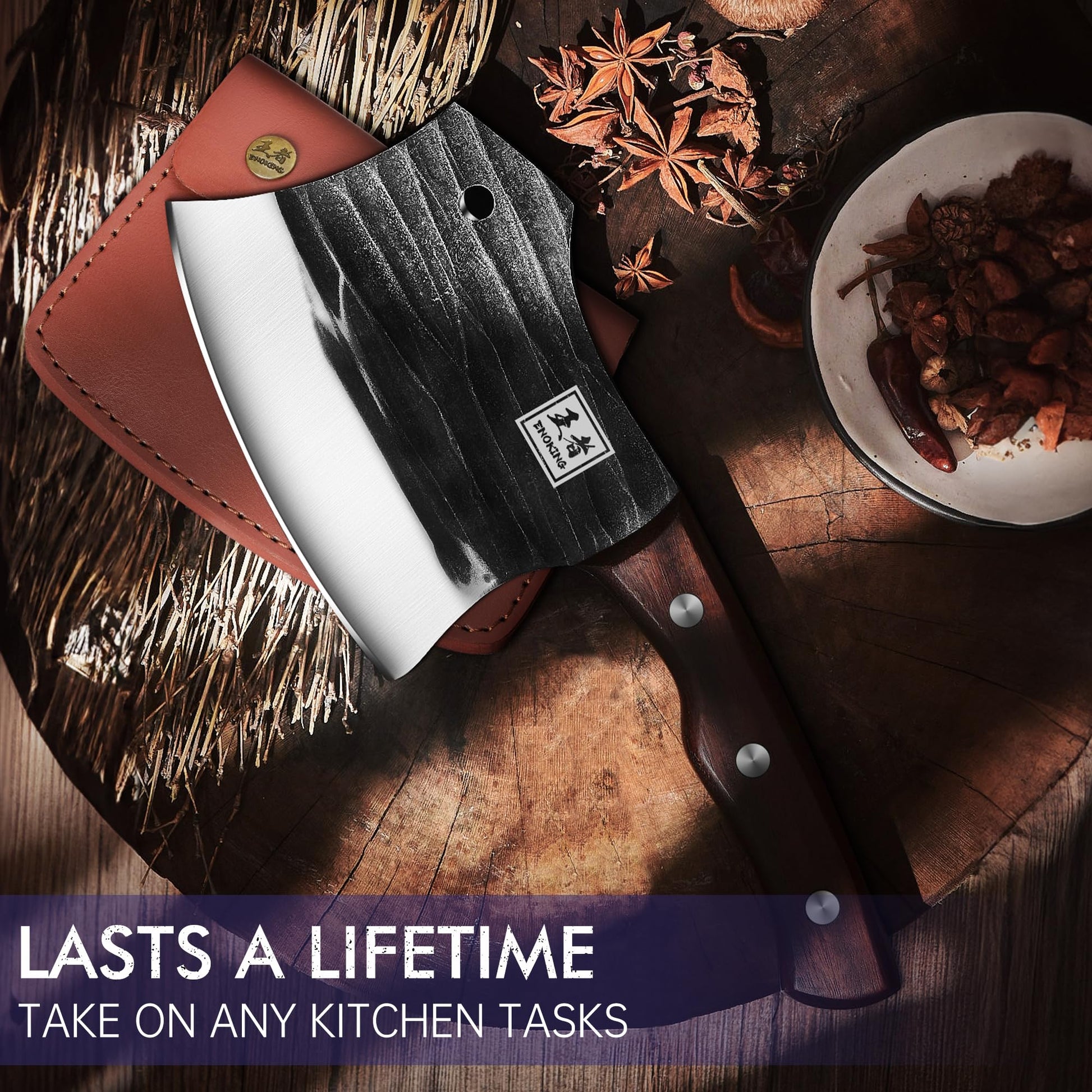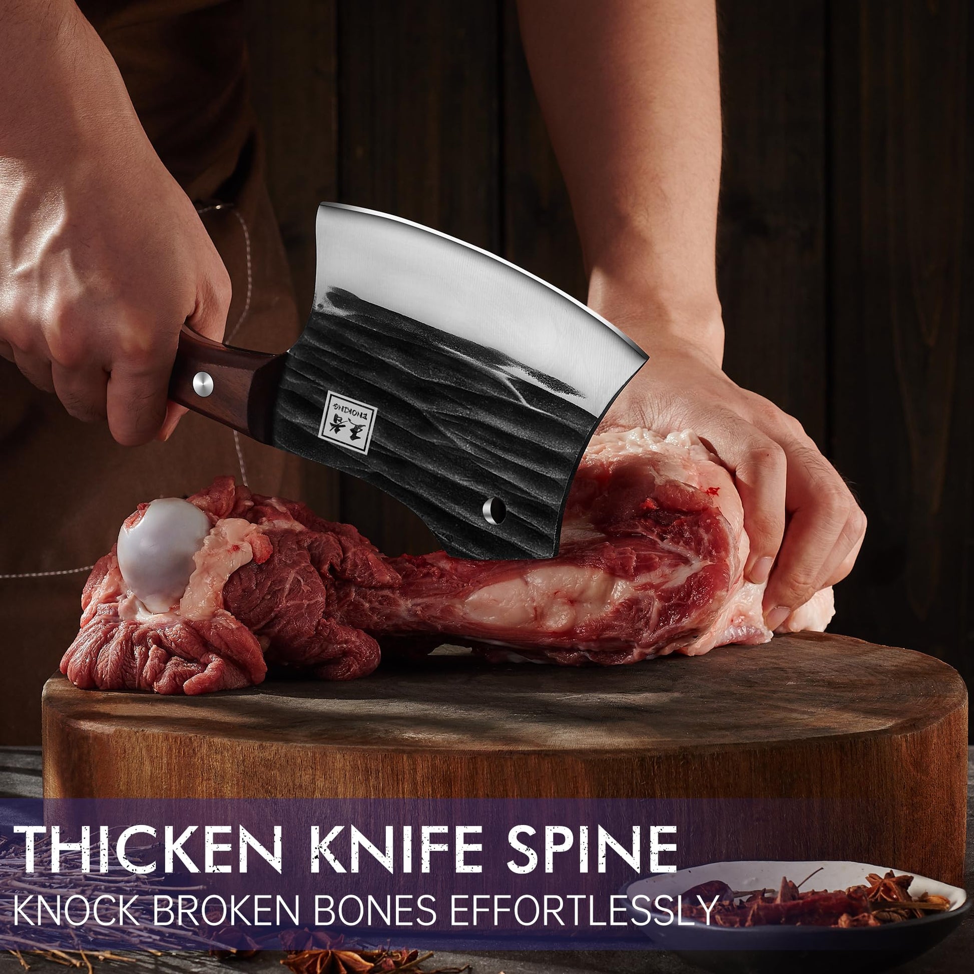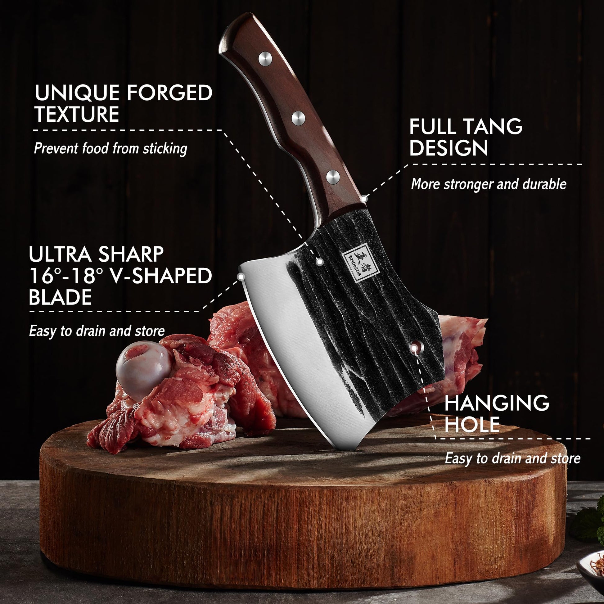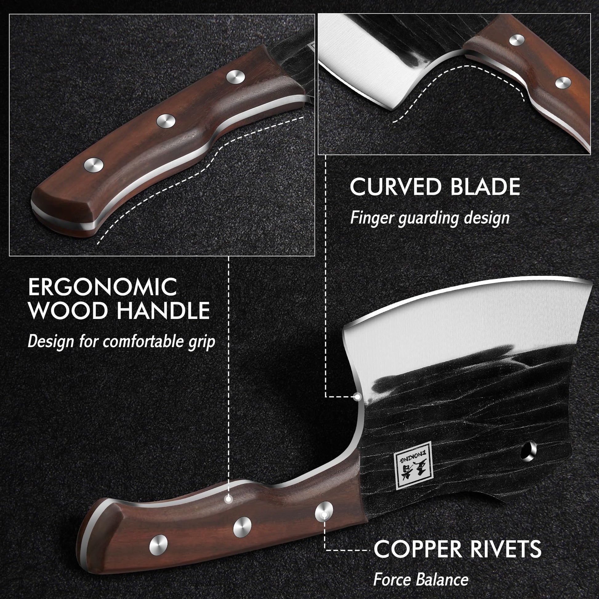 Unique Effort-Saving Design: The 5.7-inch blade is heavier than a regular kitchen knife, making it ideal for heavy-duty cutting. Its axe-shaped blade effortlessly slices through any food in its path, providing you with a premium cooking experience.