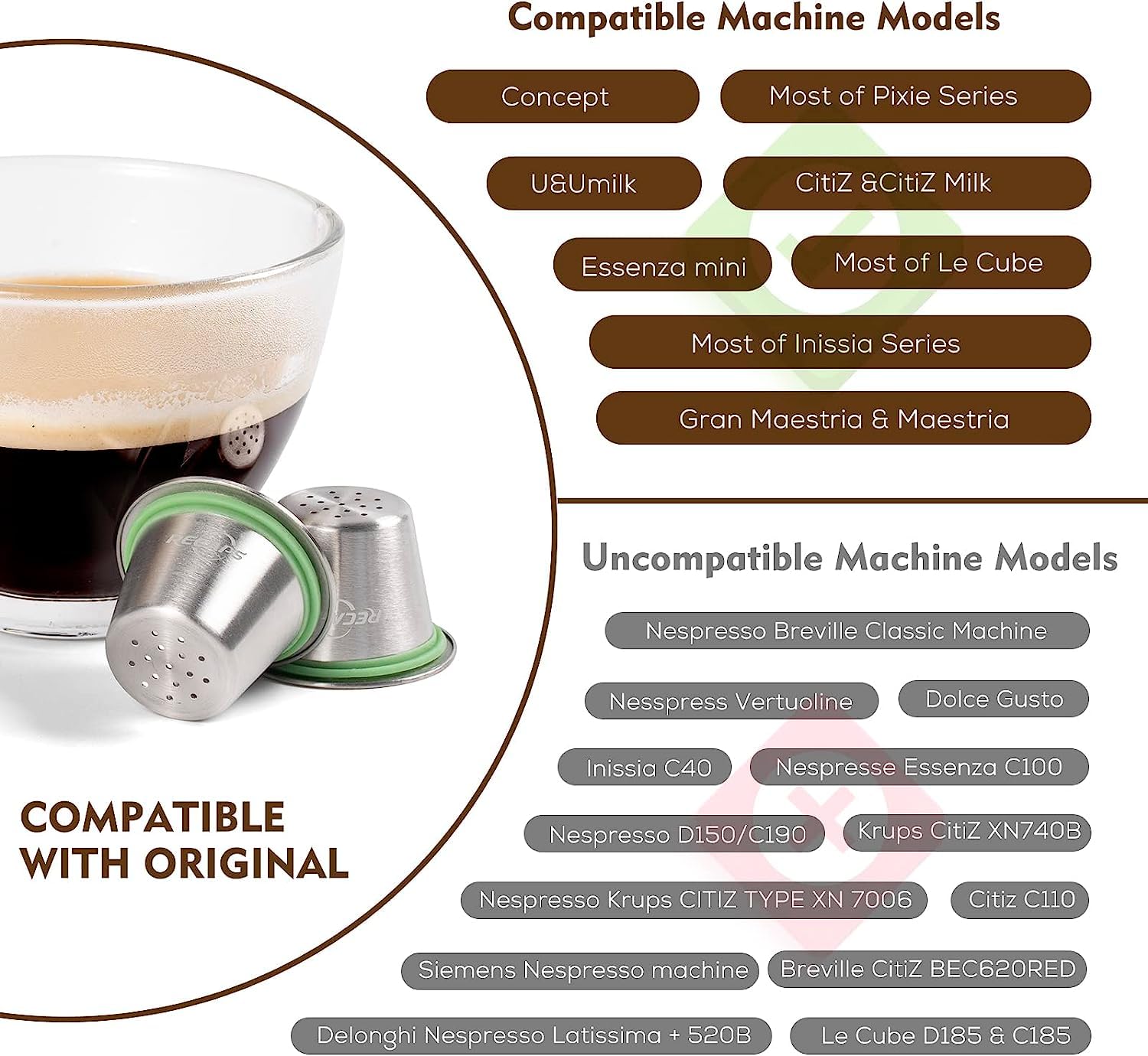 - Espresso Capsules Refillable Coffee Pods | Compatible with Nespresso OriginalLine (2 Pods+120 Lids) -