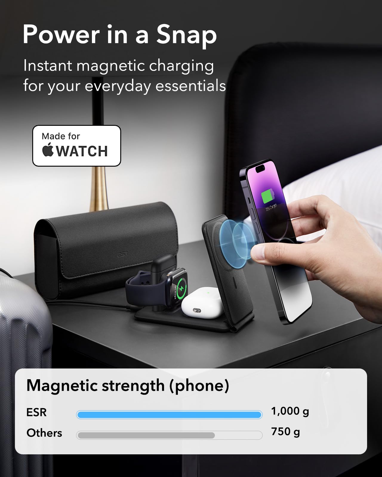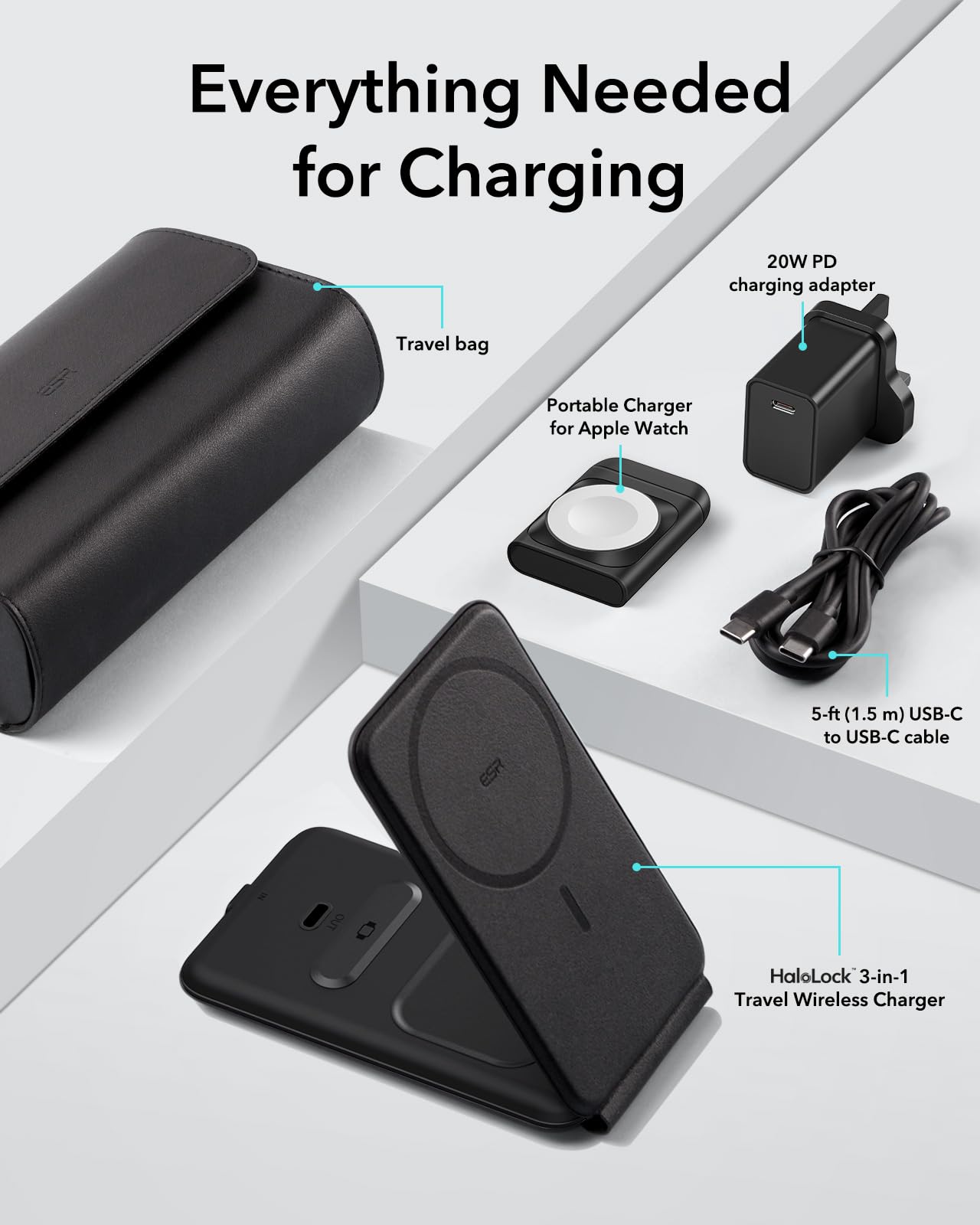 - ESR for MagSafe Charger 3 in 1 Traval Charging Station | (HaloLock) -