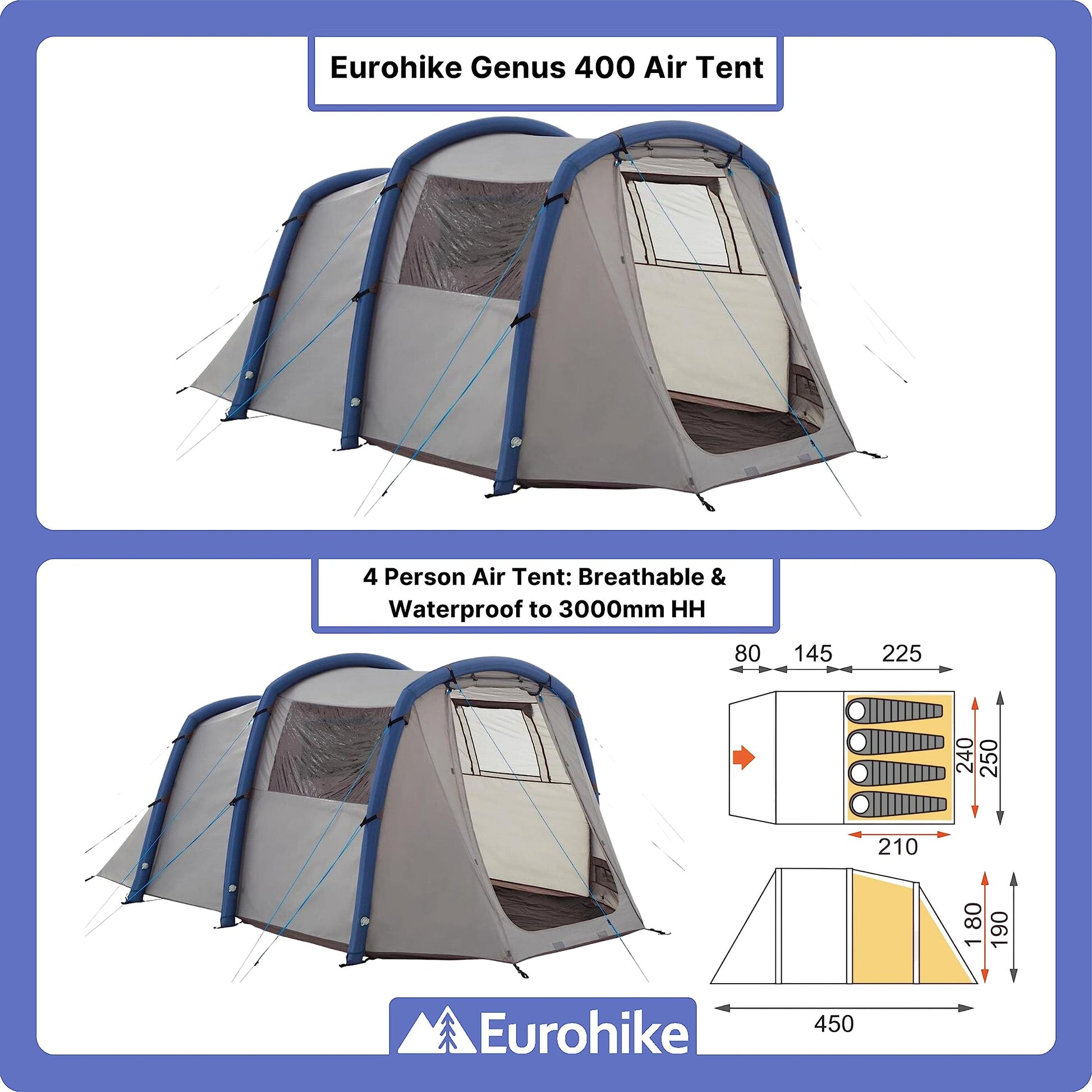 - Eurohike Genus 400 Inflatable 4 Person Air Tent | Separate Bedroom | Living Area | Porch -