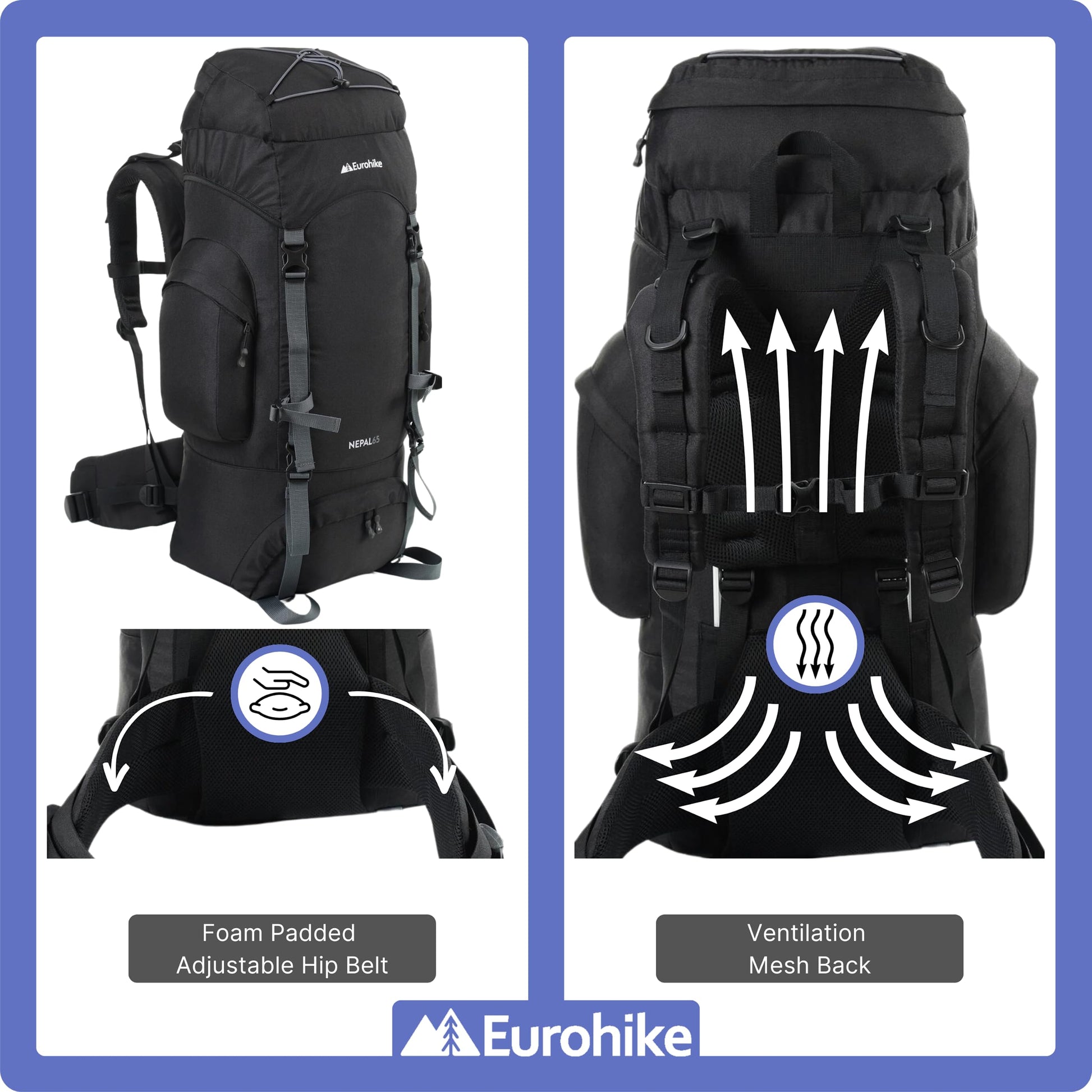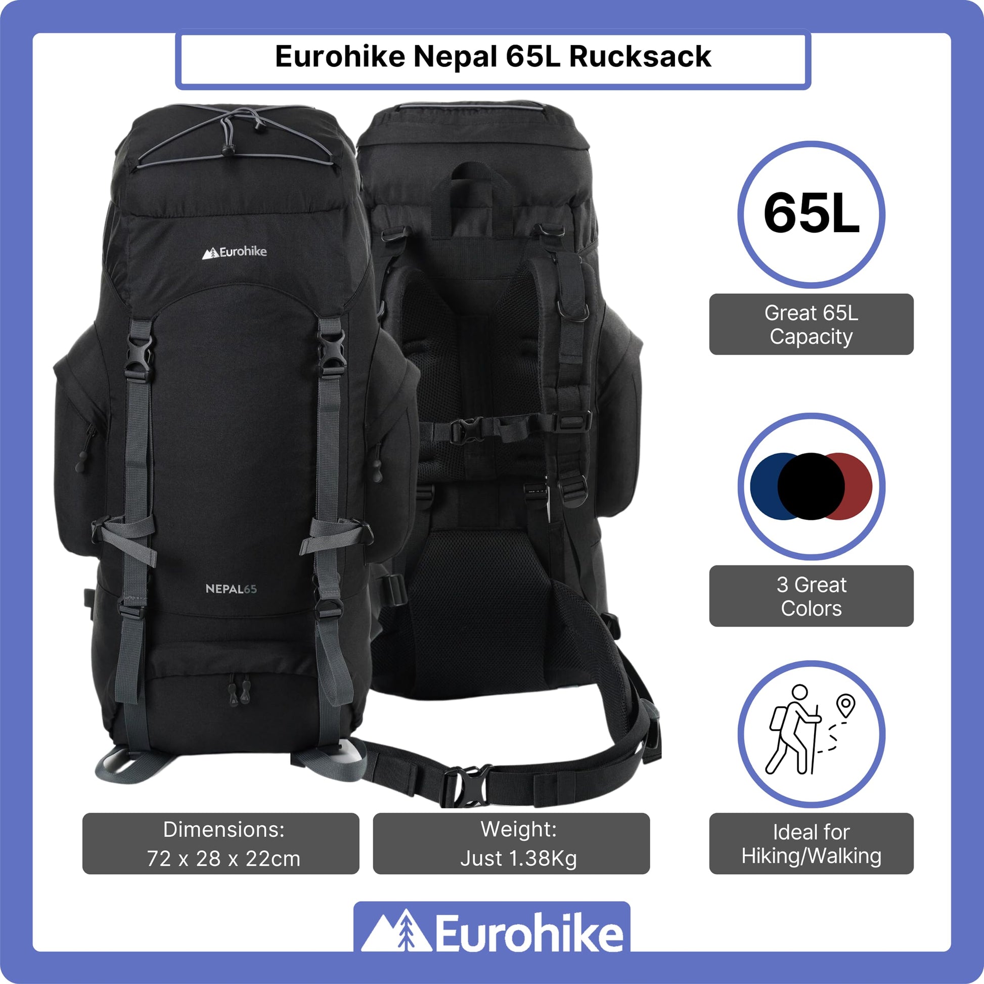 - Eurohike Nepal 65 Litre Rucksack | Ventilated Back Panel | Padded Harness | 65L Backpack -
