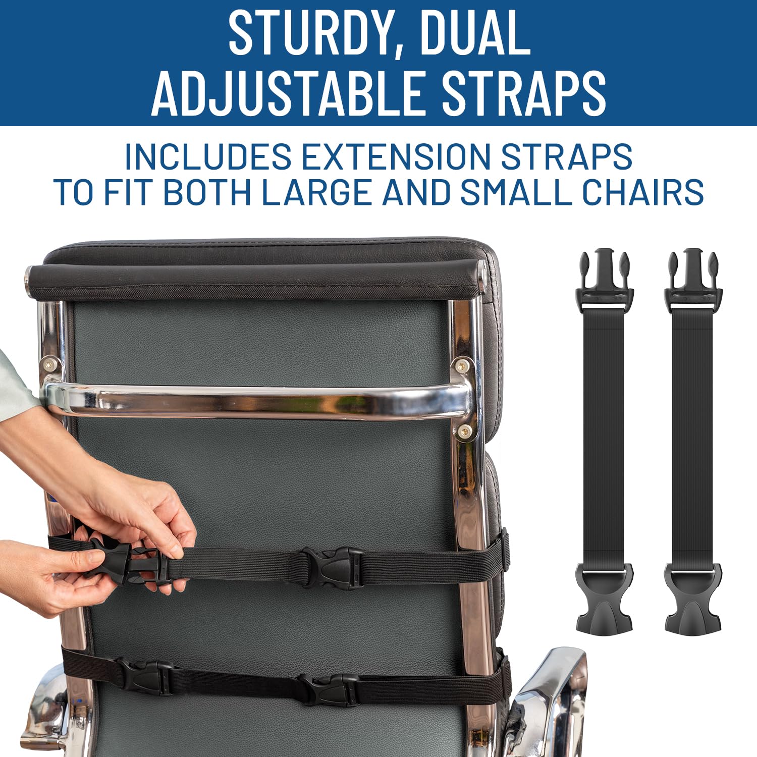 Adjustable Straps for Secure Fit: The dual adjustable straps and included extensions ensure the cushion fits chairs with a back width up to 32", keeping it securely in place.