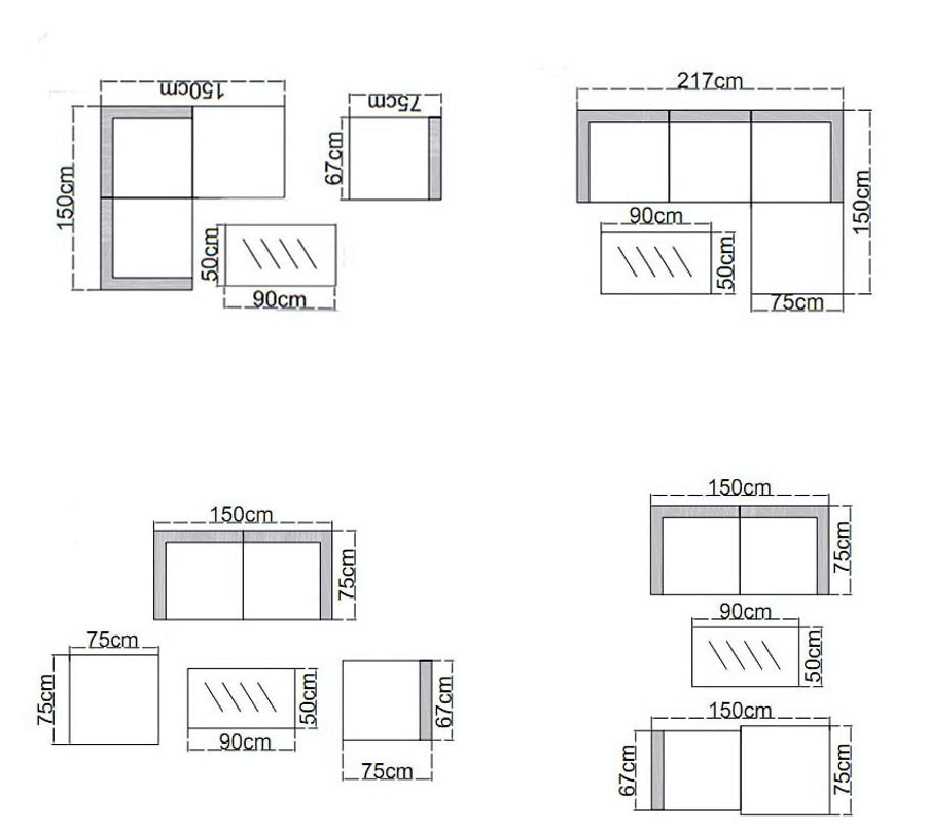 Corner Seat: 75 x 75 x 64 cm