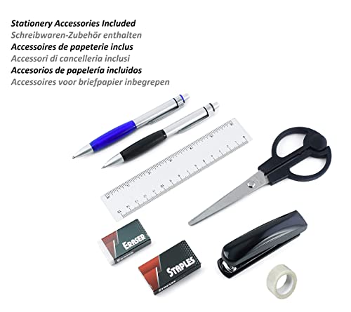 All-in-One Stationery Kit: Comes fully loaded with must-haves including scissors, a stapler (with staples), ruler, mechanical pencil, retractable ball pen, eraser, and a tape dispenser—everything a dad needs to tackle his day.