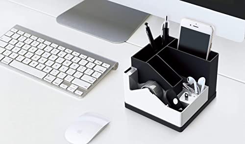 Compact Yet Mighty: Measuring just 13 x 13 x 11 cm, this stylish black-and-white set fits neatly on desks without sacrificing functionality or storage capacity.