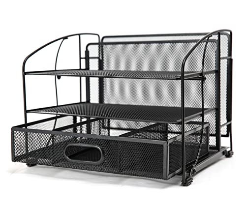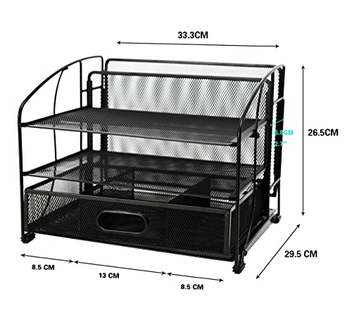 - EXERZ Mesh Desk Organiser Office Supplies | 3 Trays/Desktop File Holder -