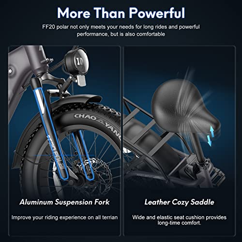 Safety and Comfort: With a 40mm front suspension fork, fat tires, and a powerful lighting system, this e-bike ensures a smooth, stable, and safe ride—even in low-light conditions.