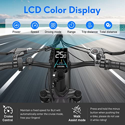Smart LCD Display: A backlit LCD screen shows real-time speed, battery level, mileage, and gear. Features like walking assist and cruise control add convenience for dads on the move.