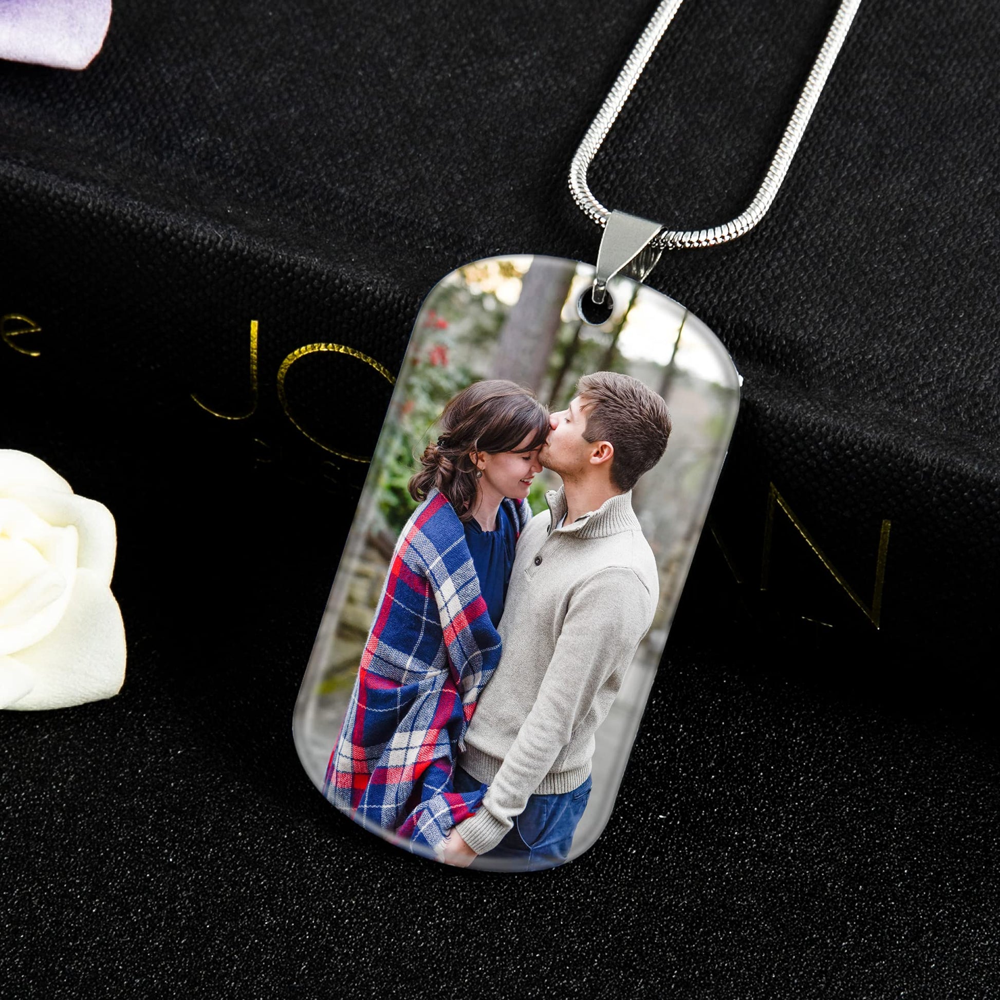 - Farfume Personalised Dog Tag Necklace with Engraved Photo & Text -