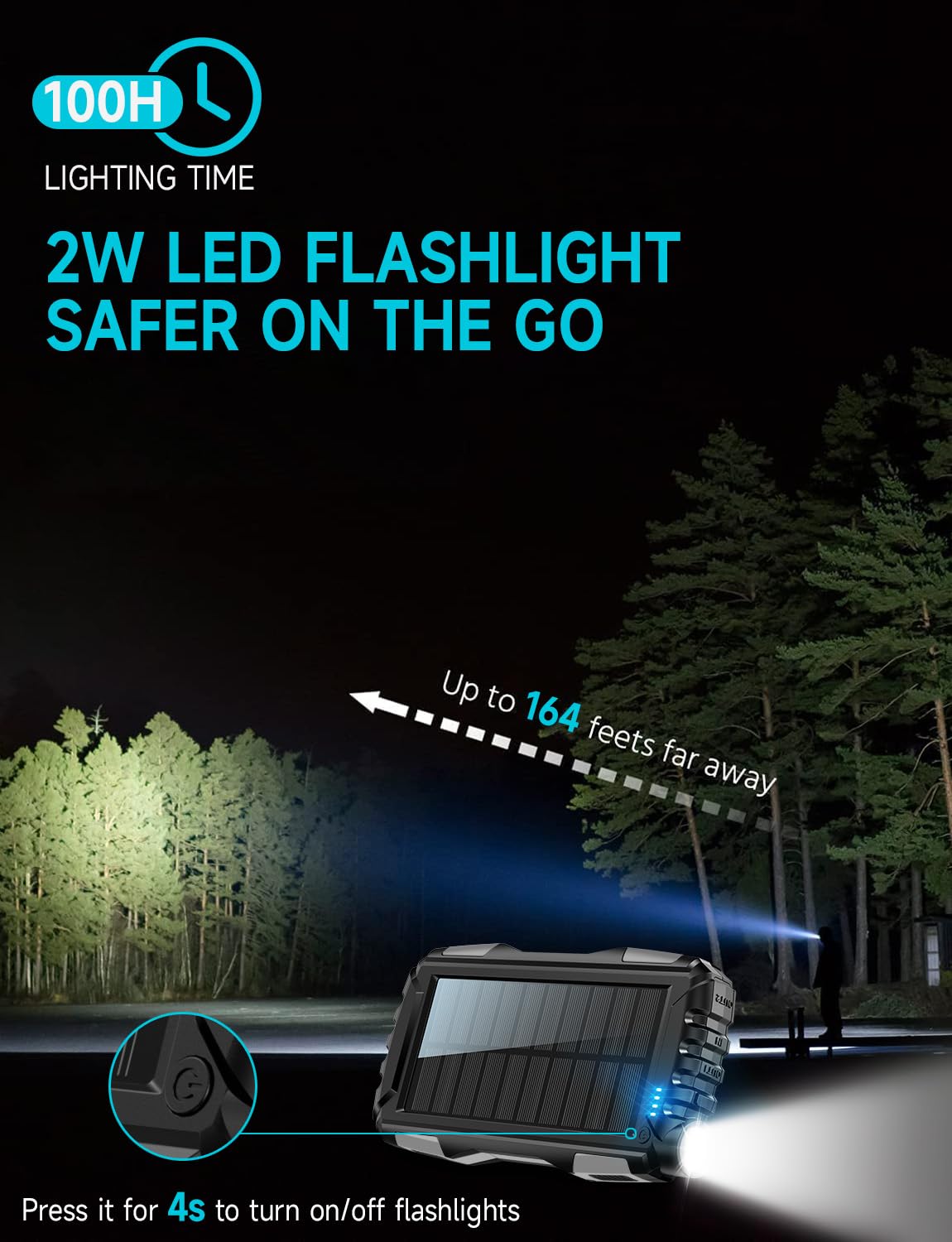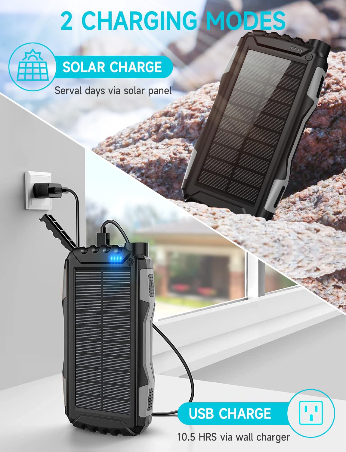 - Solar Charging Takes Time: While the solar panel can charge the bank, it takes 12-15 hours for a full charge, so it’s best for emergency use.