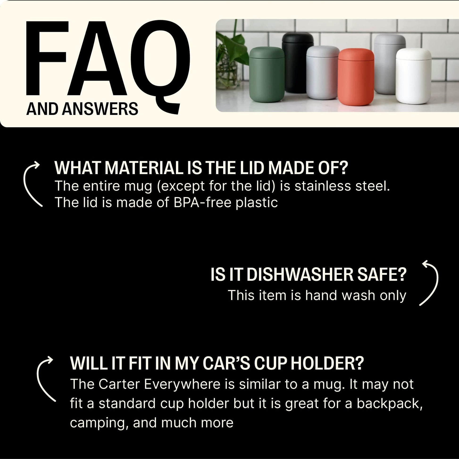 Sleek, Practical Design: With its elegant matte black finish and a compact, functional form, the Carter Everywhere Mug is designed to fit most manual brewing devices while looking stylish wherever it goes.