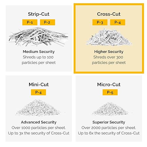 High Security Shredding: Shreds up to 6 sheets of paper at once into tiny 4 x 34 mm cross-cut particles (DIN P-4), providing 10x more security than strip-cut shredders. Perfect for ensuring confidential documents are securely destroyed.