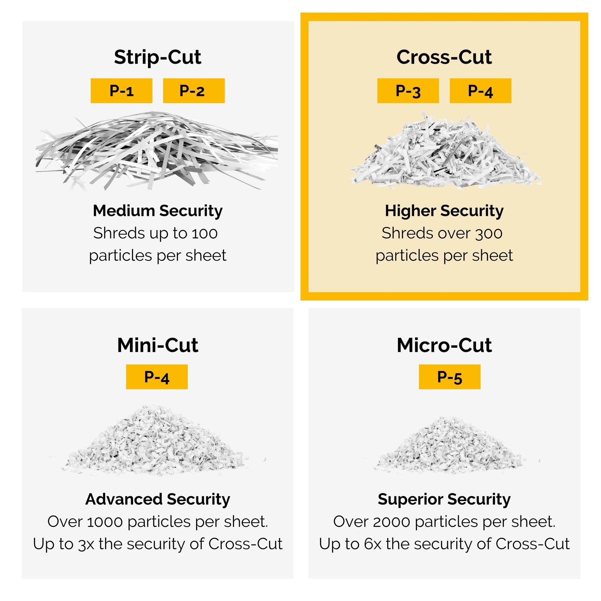 High-Security Shredding: Cross-cut technology ensures that sensitive documents are shredded into unreadable pieces.