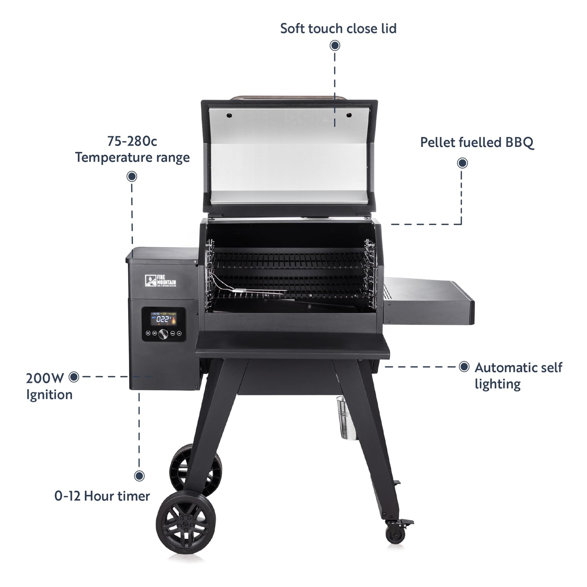 - Fire Mountain Pellet BBQ | Woodfired BBQ | Electric BBQ with LED display | Automatic Pellet Feeder -