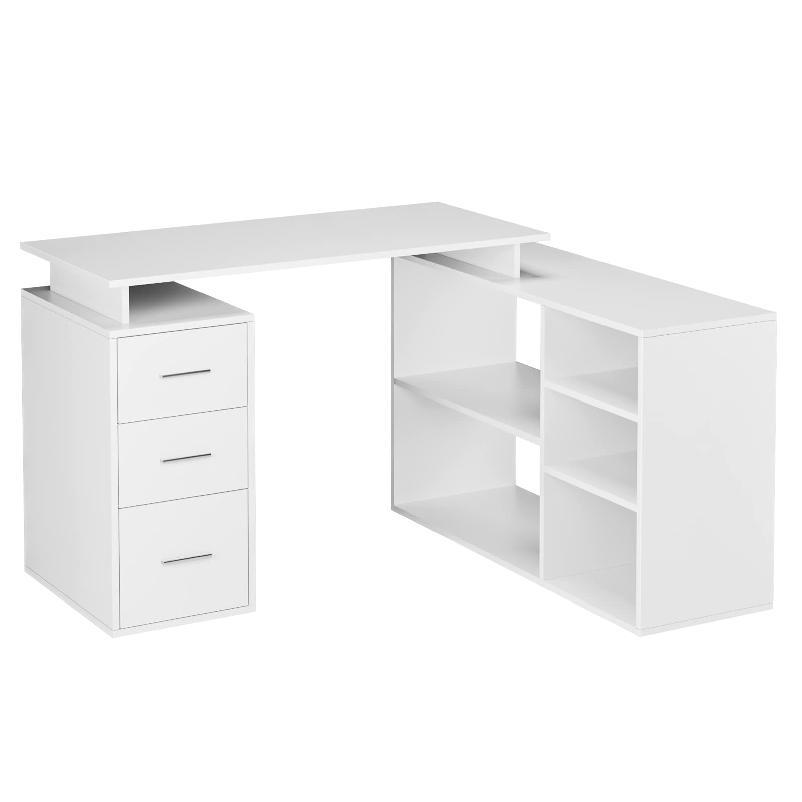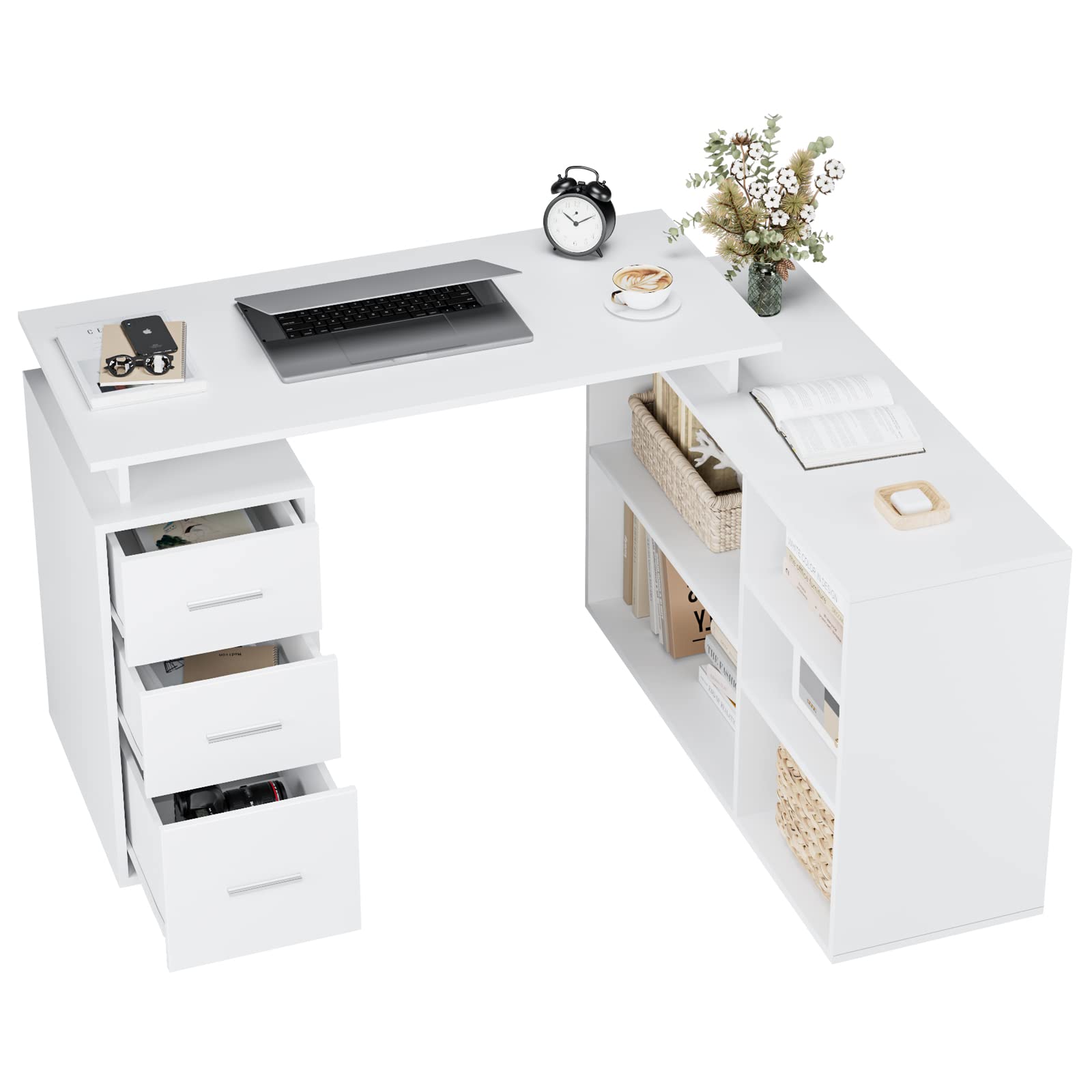FirFurd L-Shaped Desk with Drawers & Adjustable Shelves – White Corner Computer Desk | Top Dad Smart Workstation for Dads Who Mean Business