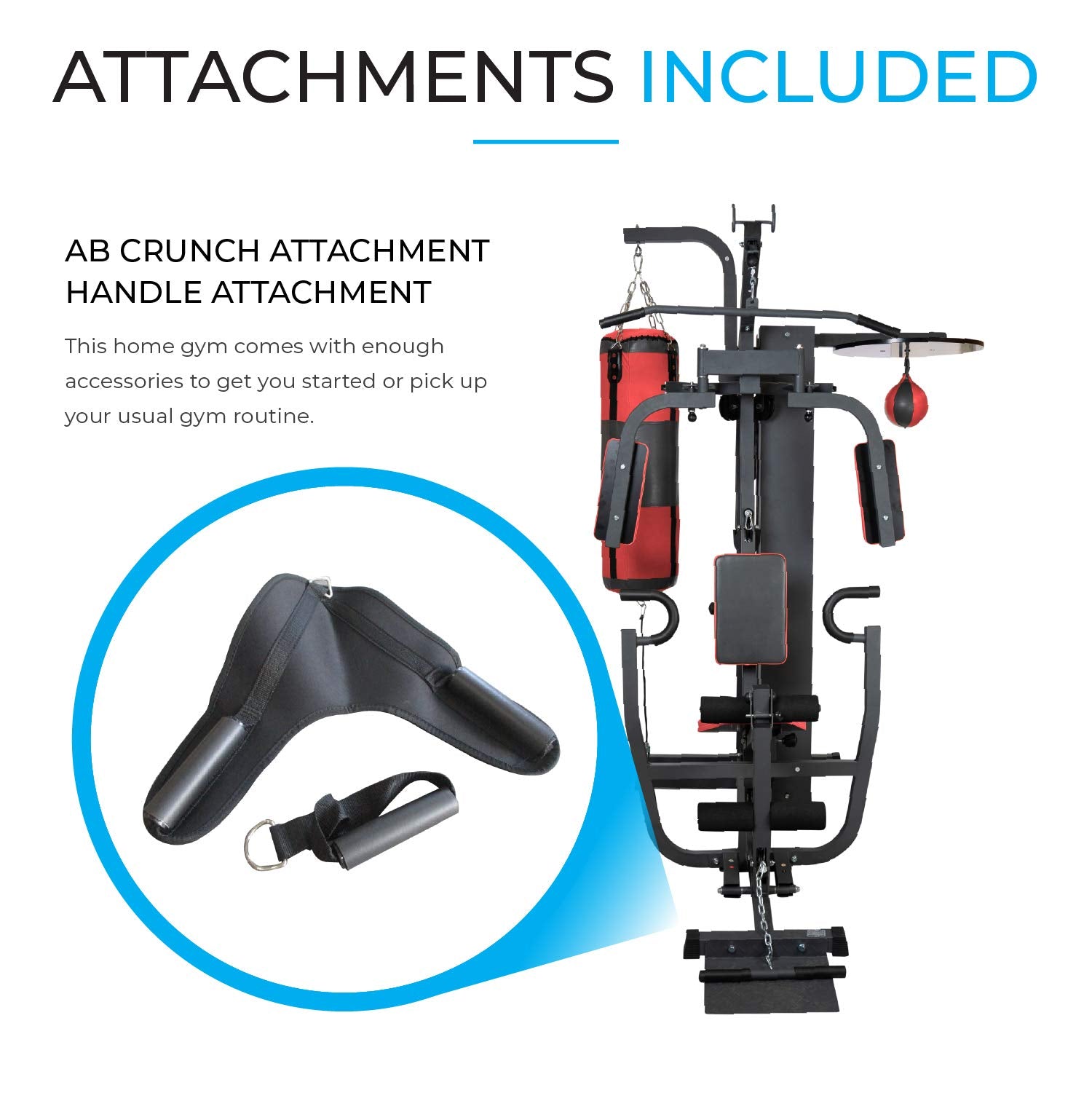 Versatile Workout Stations: Includes a pull-up station, dip station, lat pull-down bar, cable machine, and leg press, allowing you to target your back, shoulders, chest, abs, biceps, and legs.