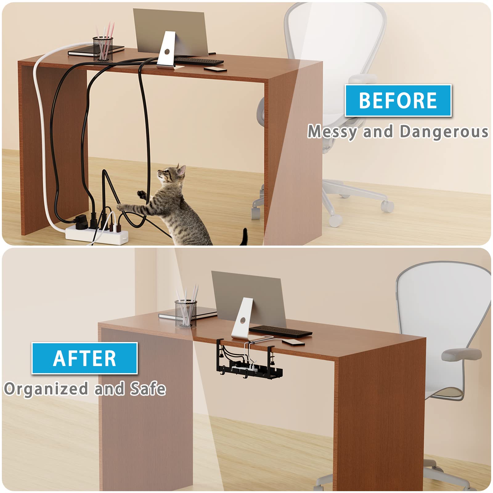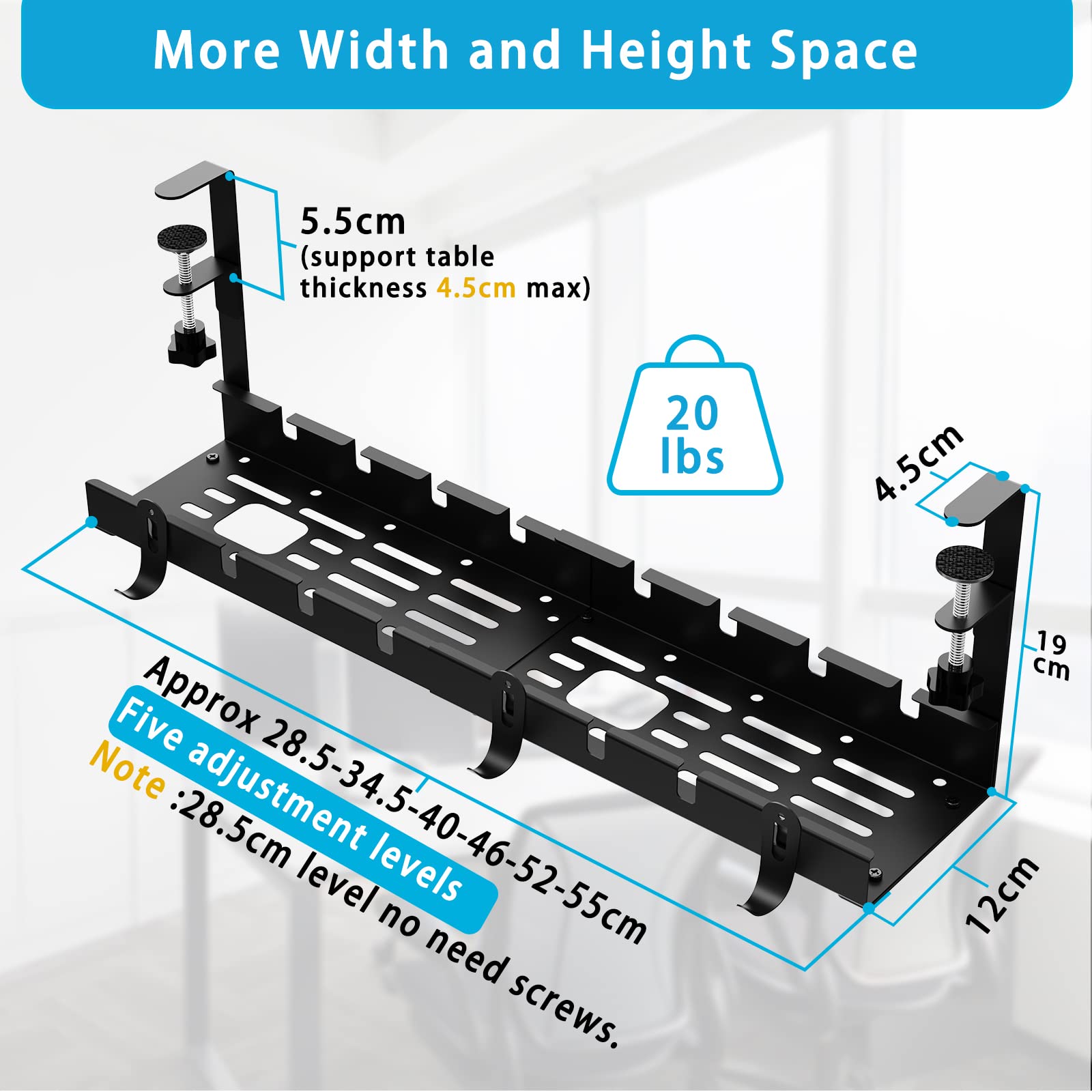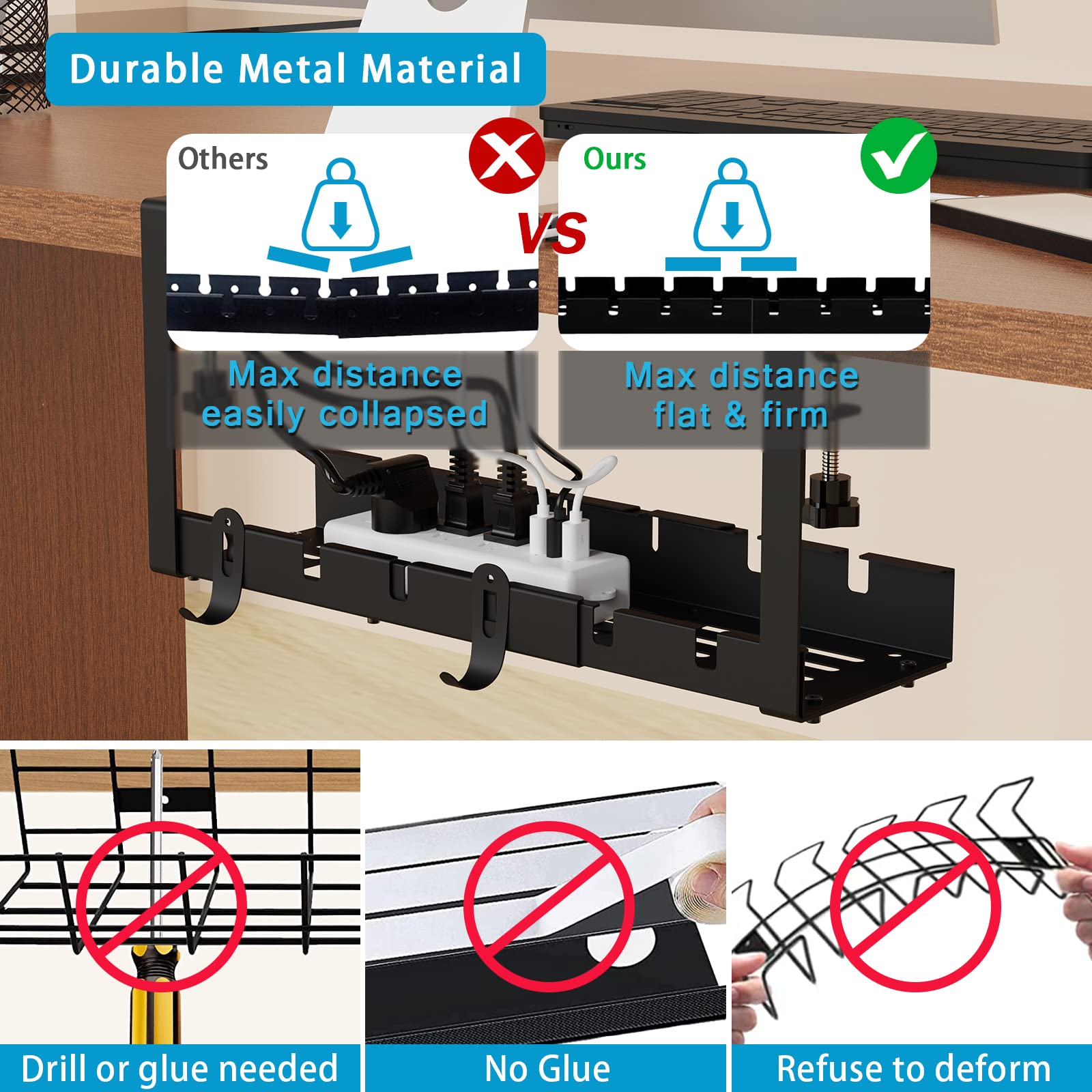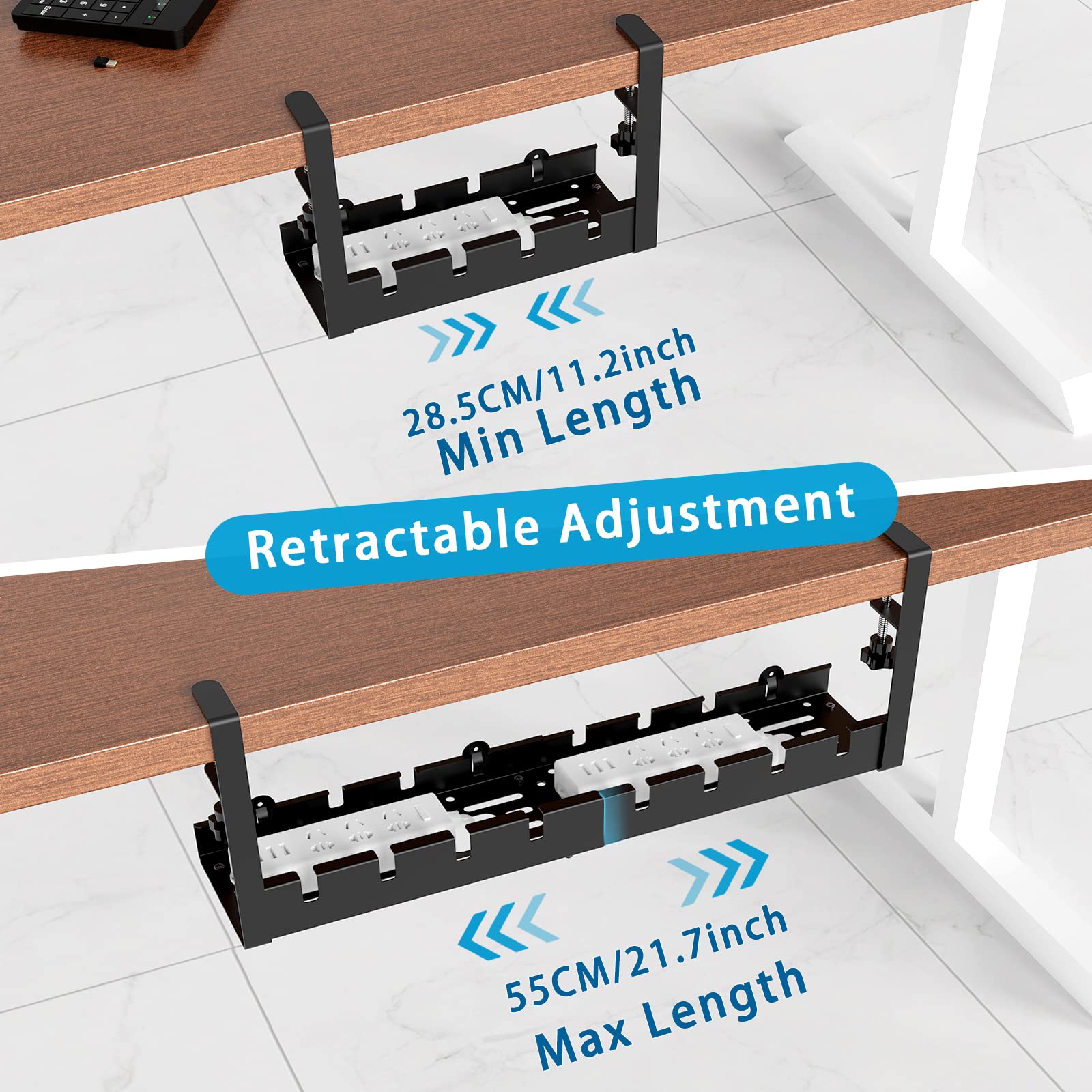 - Flow fire No Drill Under Desk Cable Management Tray | 11.2inch-21.7inch Retractable Under Desk Cable Tray for Wire Management | Under Desk Wire Management for Office and Home(Black) -