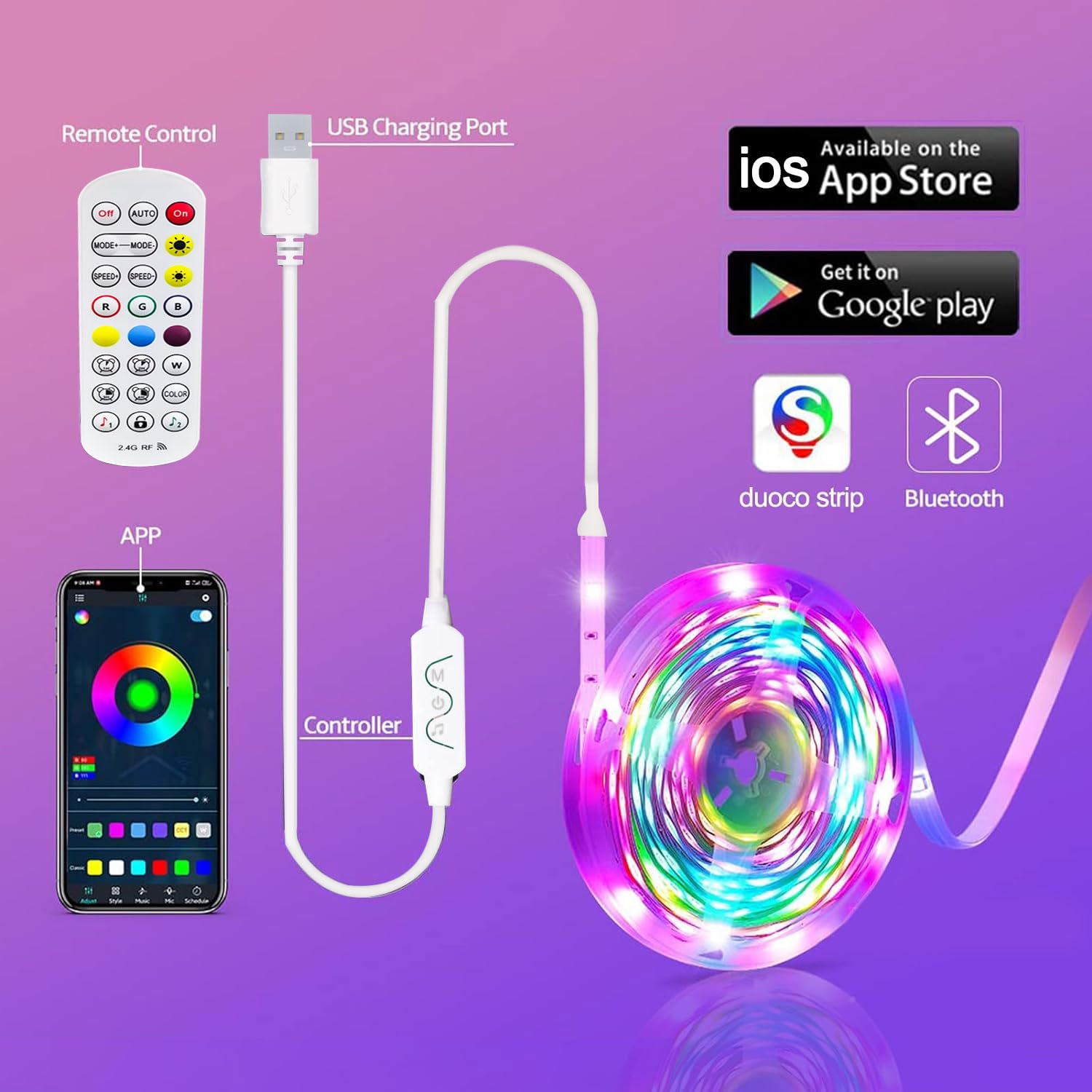 User-Friendly Design: The remote control offers full functionality, and the DIY button lets you save your favorite color settings for future use.