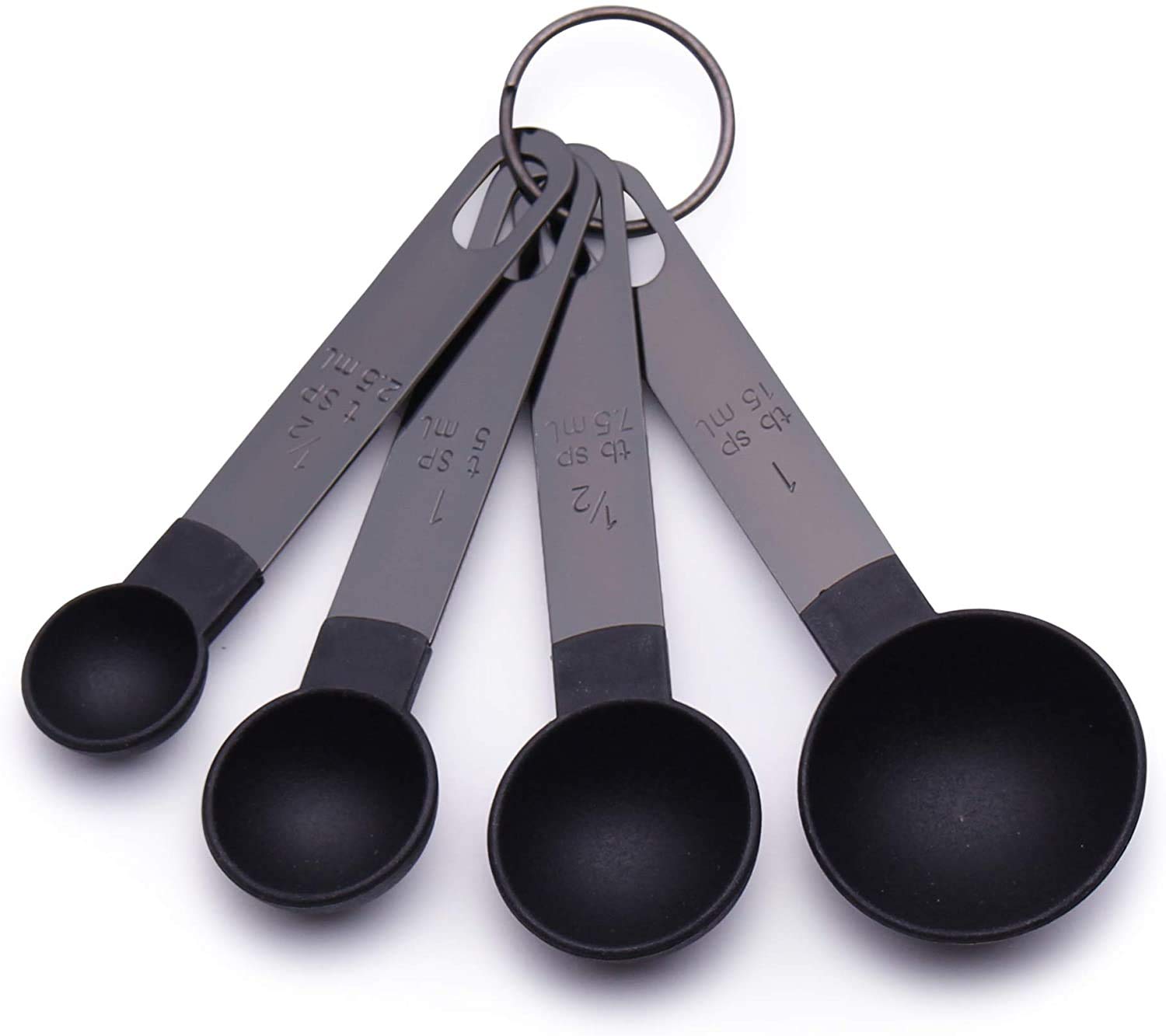 - FONYA 8-Piece Black Measuring Tools | 4 Measuring Cups / 4 Measuring Spoons with Metal Handles -